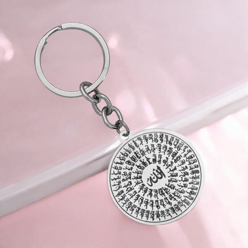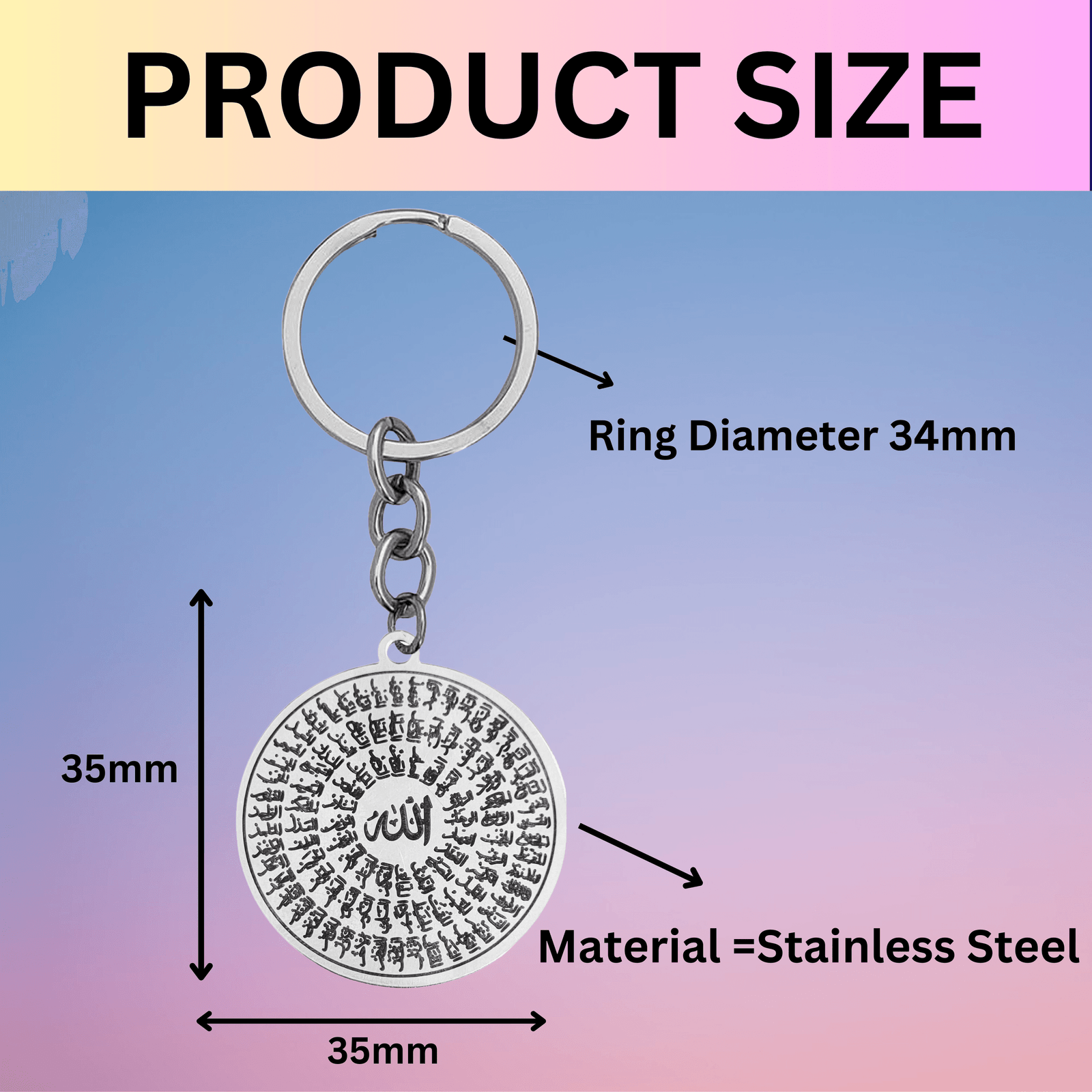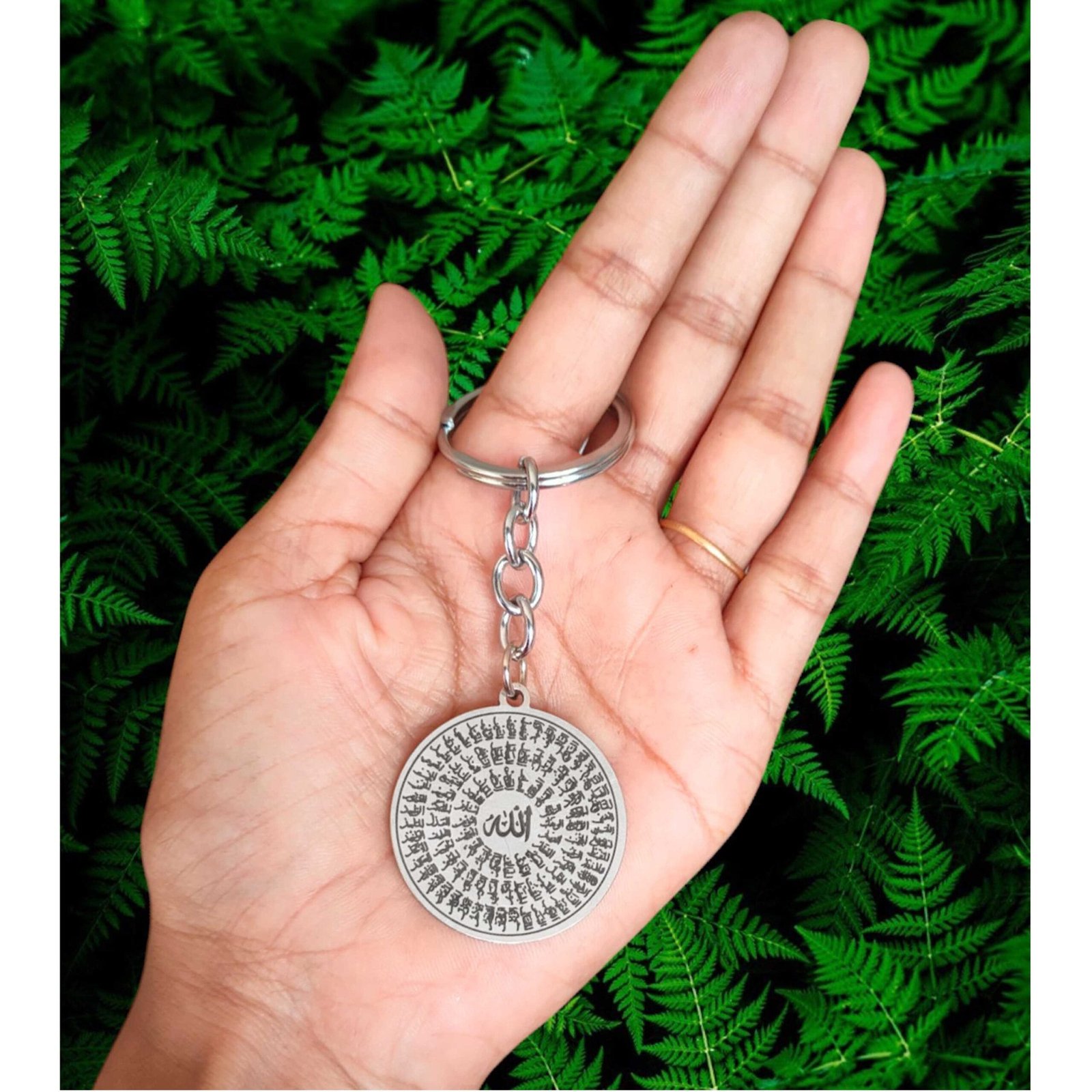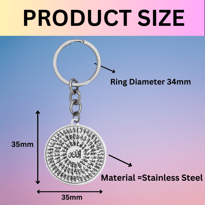 - 1. This Stylish Islam God Massager Key Chain is Made of Durable Stainless Steel, Classic Black and Silver Colour, Lead-free, Nickel-free, Hypoallergenic, Polished Surface, Comfort Fit in Person.