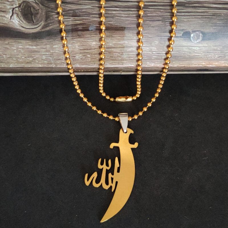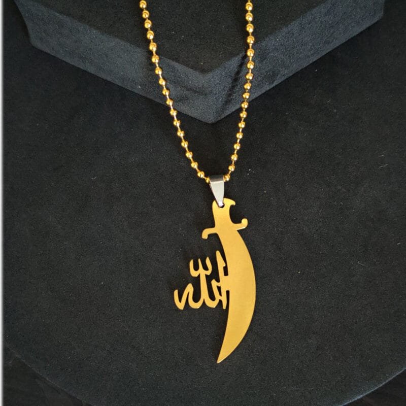 - Sword of Hz Ali (Dh’l-faq’r Zulfiqar) Necklace written can be worn every day. It is made by hand in our workshop with care. All our jewelry is the most elegant choice for the bridesmaids, friends, your loved ones and for yourself. It is also a fact that silver jewelry improves blood circulation and provides electricity and makes you feel awake.