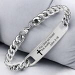 - Perfect gift: Inspirational Bible verse quote ID bracelet perfect for Christmas, Thanksgiving, Father’s Day, Valentine’s Day, anniversary gifts for boys, father, child, boyfriends, husbands, wife, etc. Always inspire you to go forward