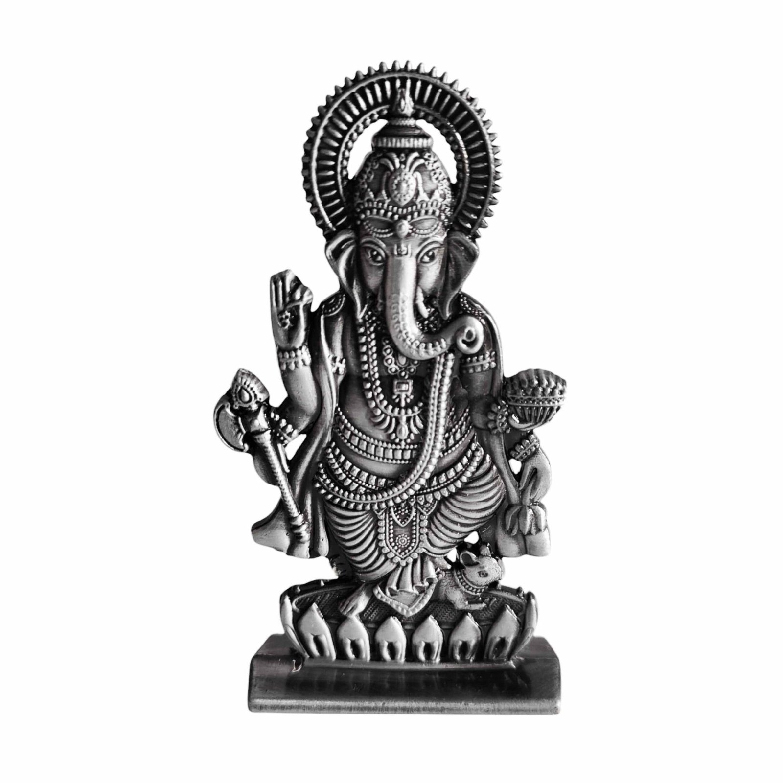 - The Hindu Lord Ganesh Ji also known as Ganesha, Ganapati Bappa and Vinayaka, is one of the best-known and most worshiped deities in the Hindu pantheon. God Ganesha’s elephant head makes him easy to identify. Ganapati Bappa is widely revered as the remover of obstacles, the patron of arts and sciences and the deva of intellect and wisdom. Ganesh Ji clears the obstacles and paves the way for us to move forward in life. The large elephant head of Lord Ganesha symbolizes wisdom, understanding, and a discriminating intellect that one must possess to attain perfection in life. A decorative accent for your Home, Office, Table Top, Temple, Mandir, boutique, workshop, yoga room, shop or any other indoor place for any occasion like festival decorations, diwali decorations.