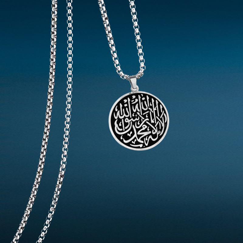 - Ayatul Kursi Shahada Necklace Gift Black And Silver