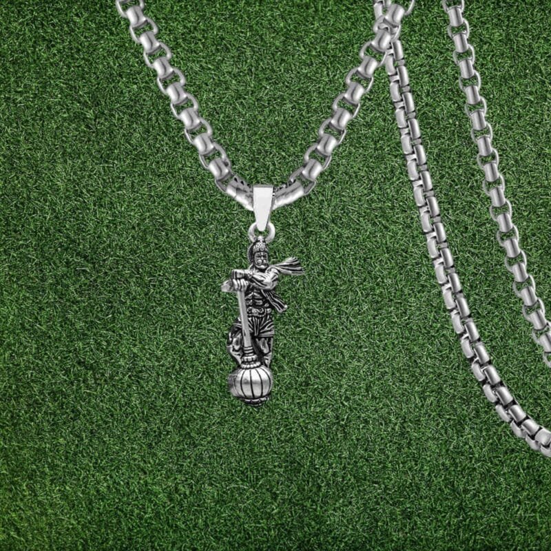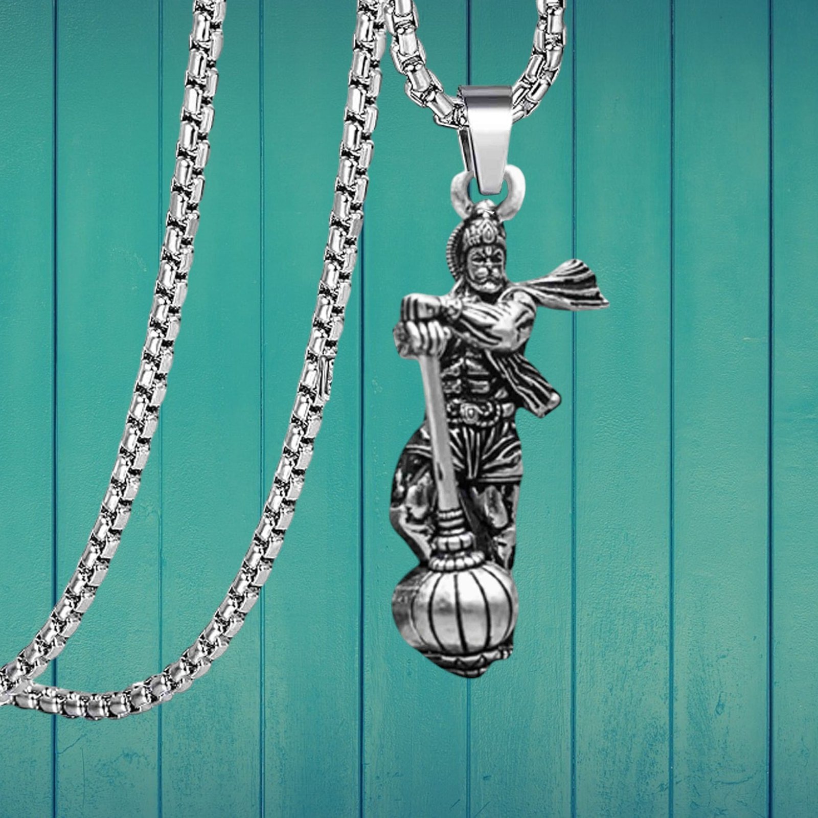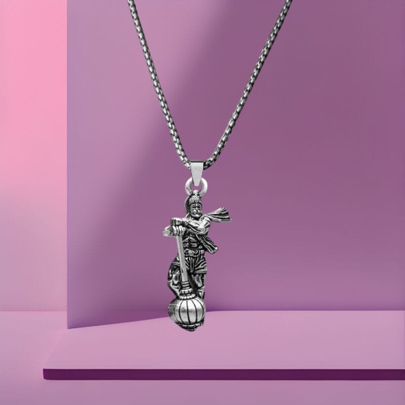 • Detailed Hanuman Pendant: Features a meticulously crafted pendant depicting Lord Hanuman, symbolizing strength, devotion, and protection.