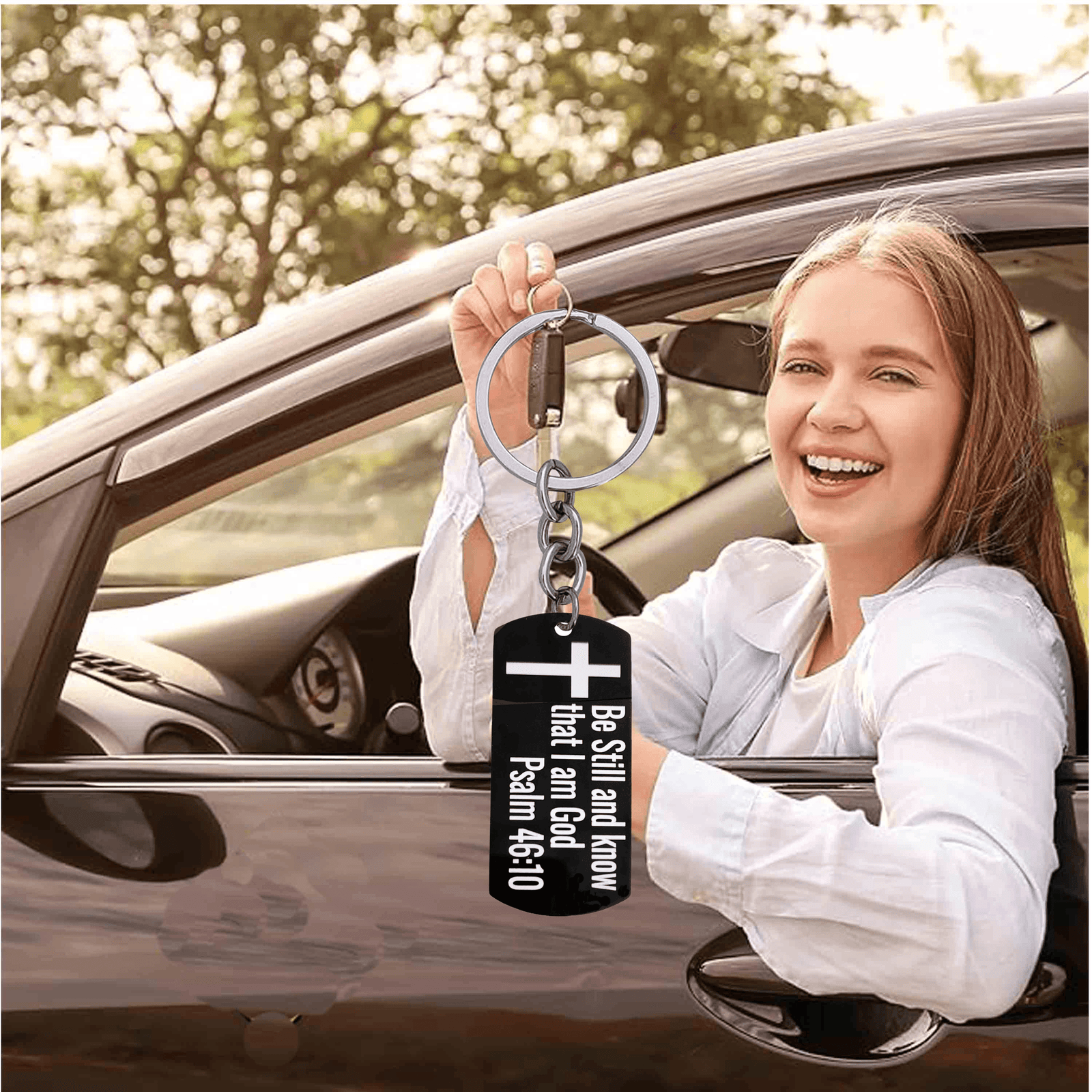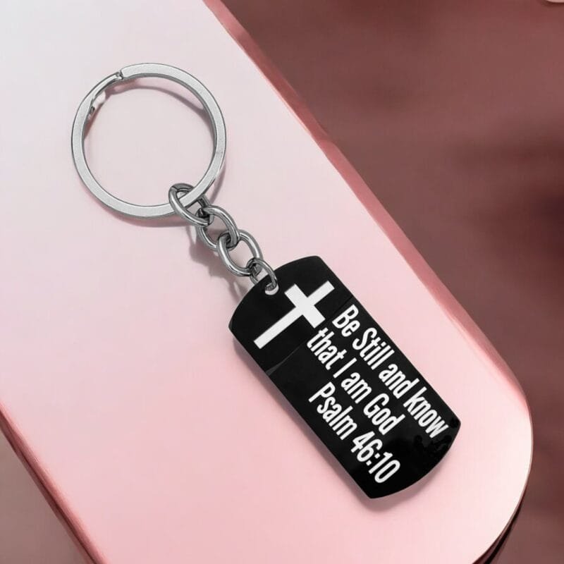 - bible verse keychain Gift psalm 46:10 Black