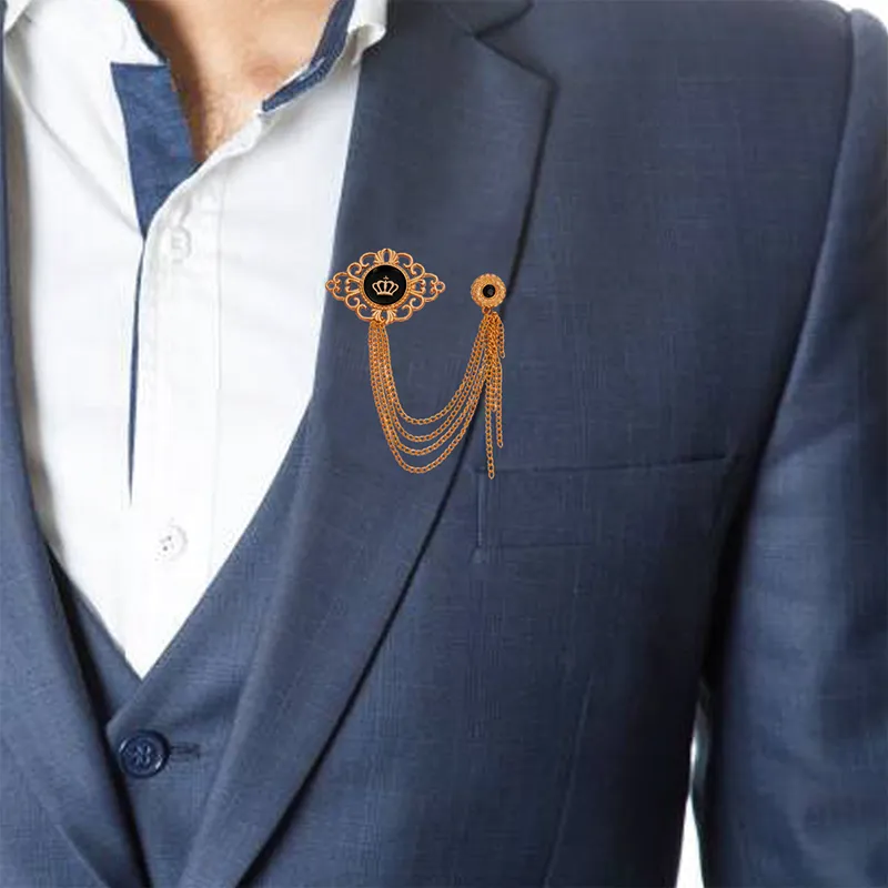 Hanging Chains Collar Brooches Pin for Career Suit Tuxedo of Shirts Tie Hat Scarf Brooch  (Gold, Black).
