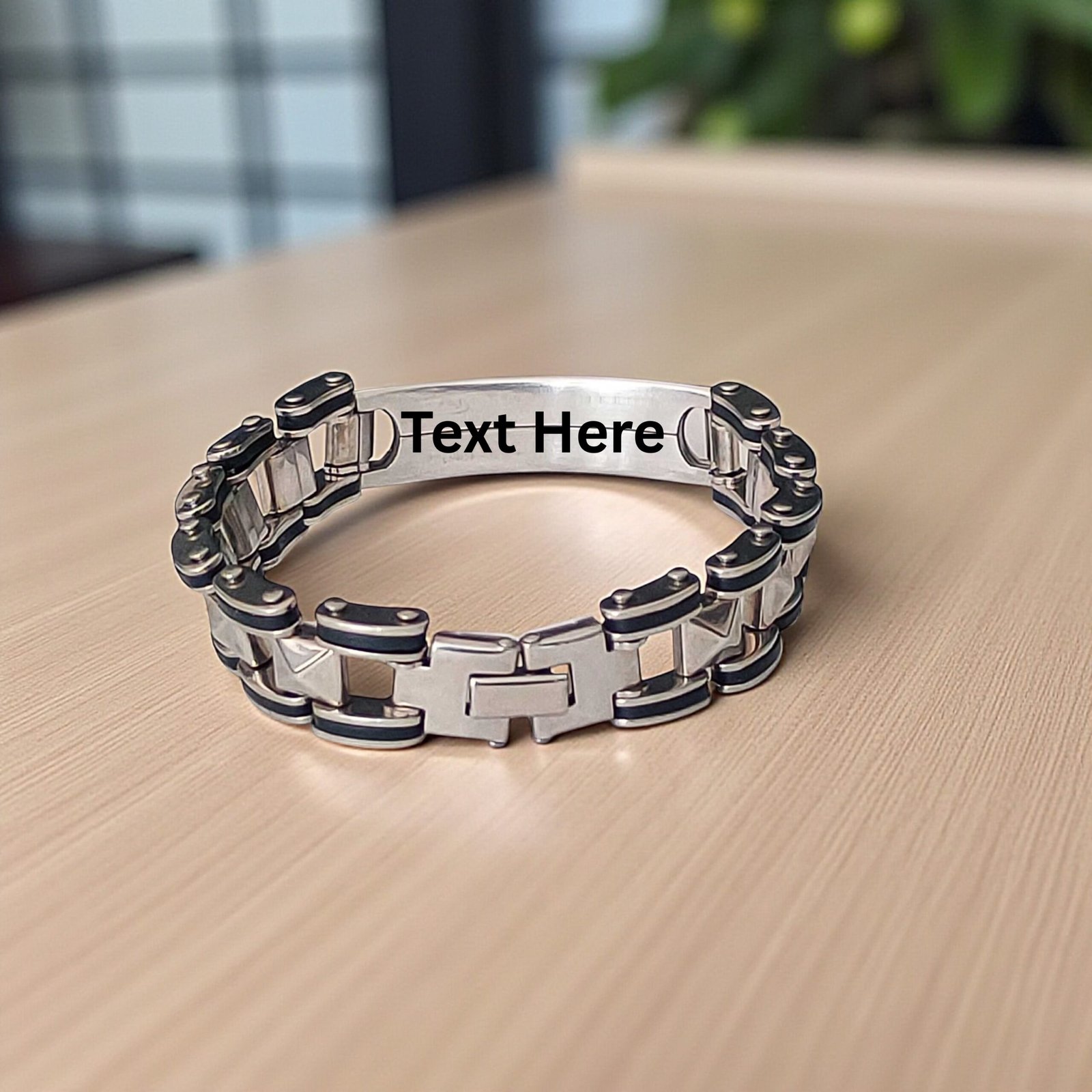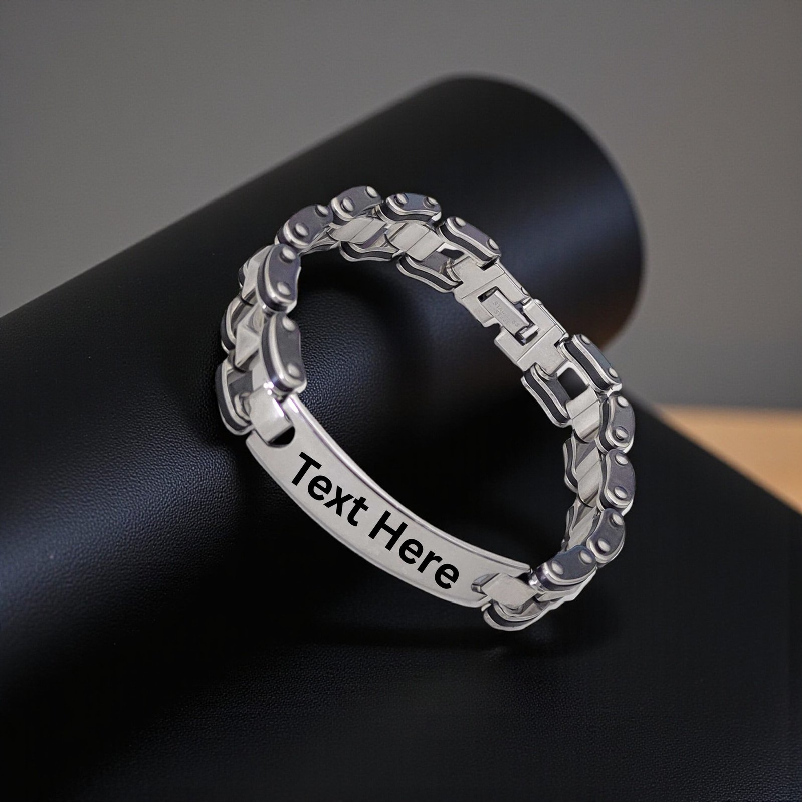 - Make a statement without saying a word. This Heavy-Duty Men’s Chain Bracelet features a chunky, industrial-style design that captures strength and resilience. Made from high-grade stainless steel, it’s built to handle your everyday hustle—whether you’re on the bike, in the gym, or out with the crew. The large ID plate is ready for custom engraving—ideal for marking your name, a significant date, or an inspiring quote. Its mechanical chain look adds an edge to your outfit while the secure clasp ensures it stays with you wherever you go. For the man who carries strength in style—this bracelet doesn’t just accessorize, it represents.