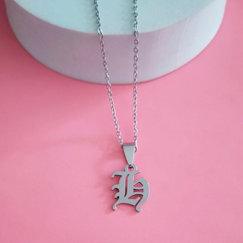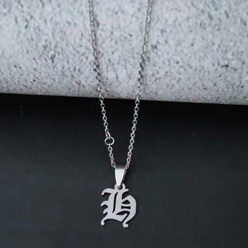 - Modern yet steeped in traditional charm, this Old English Initial Necklace combines the very best of classic design with a playful, contemporary charm fit for modern-day dressing. A natural choice when it comes to gifting someone special or a precious piece to wear yourself, this Old English letters necklace features a customizable initial pendant that can be personalized by you, finished in a gothic-style font.
