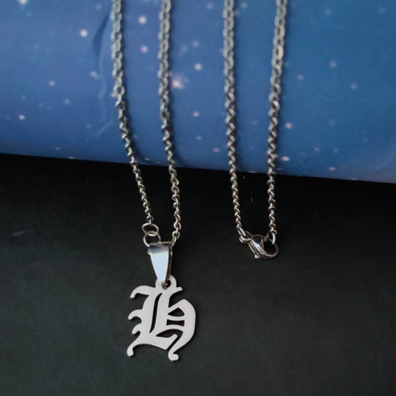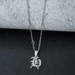 - Custom Old English Initial H Alphabet Letter Gothic Necklace