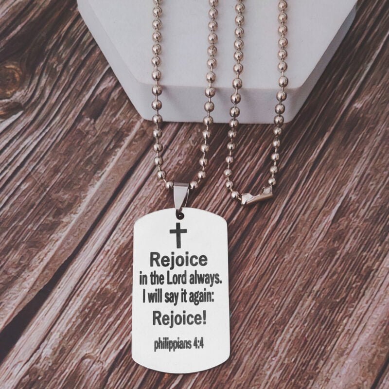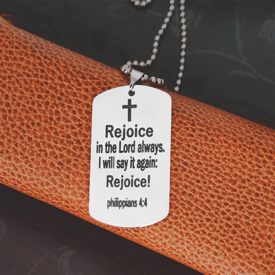 Rejoice In The Lord Always Dog tag Pendant Gift Philippians 4:4