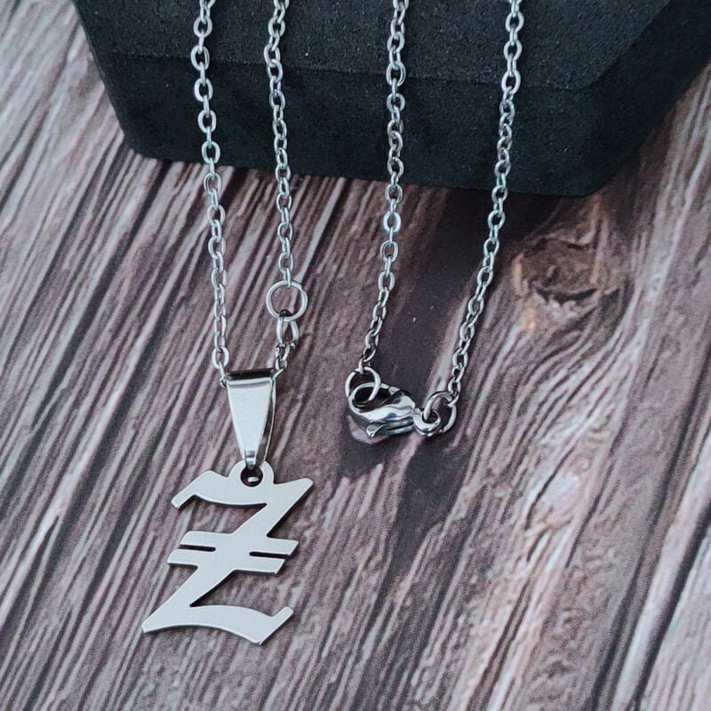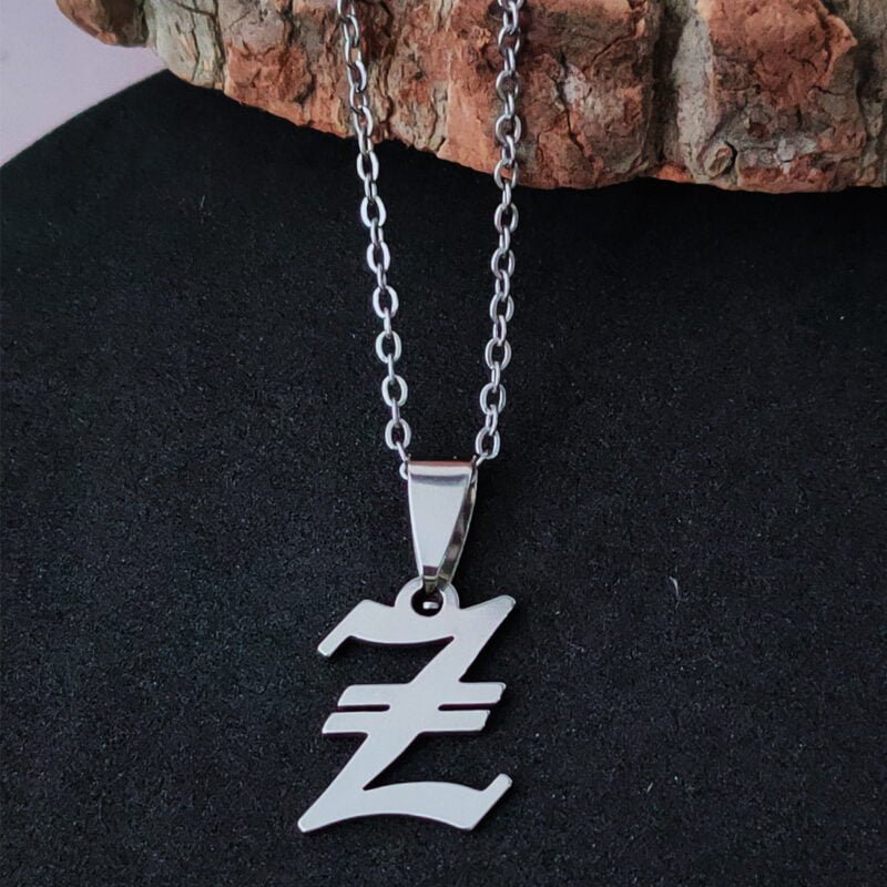Personalised Old English Initial Z Alphabet Letter Customized Gothic Necklace