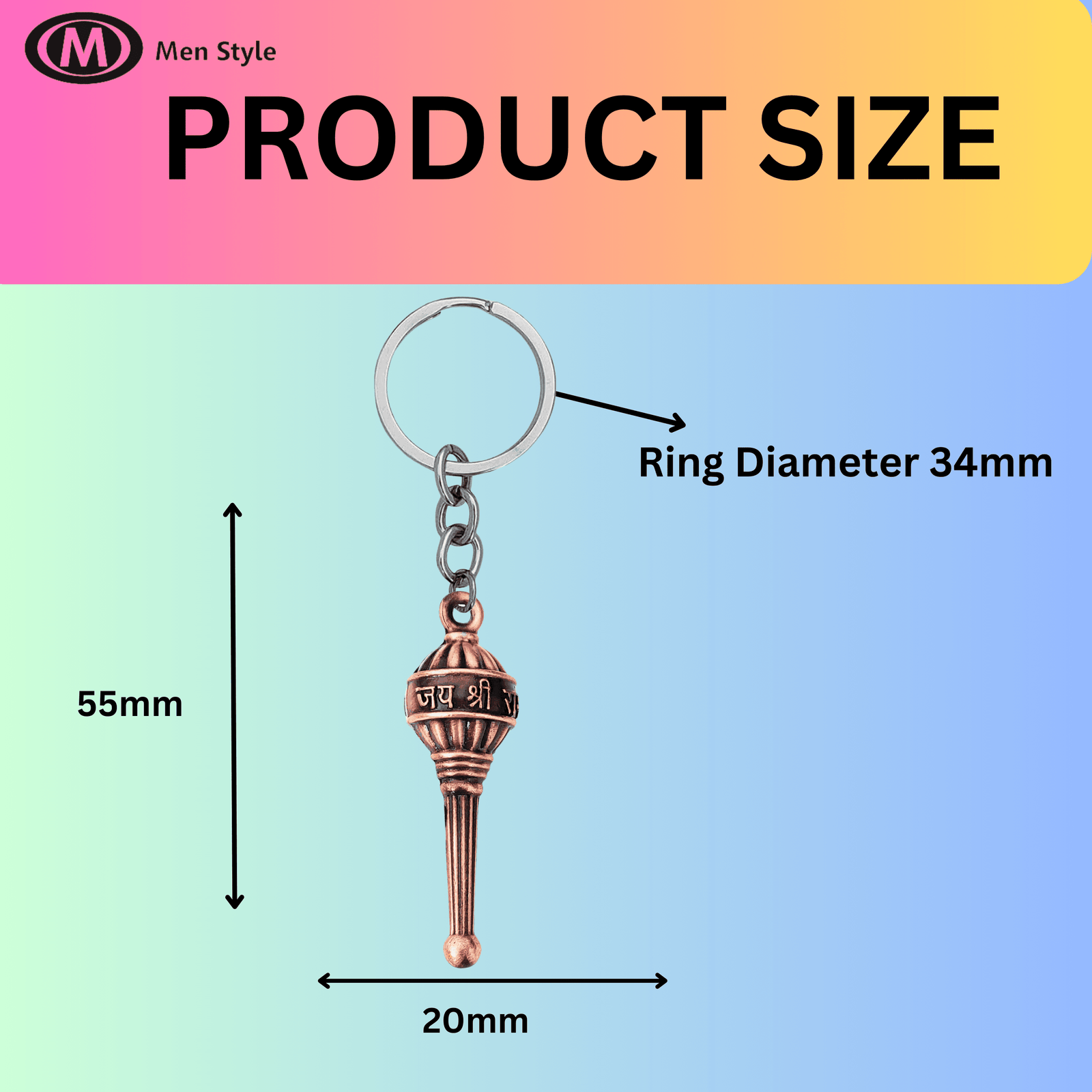 - Spiritual Accessory: This Hanuman Gada key chain/pendant is a symbolic representation of Lord Hanuman’s strength and devotion.