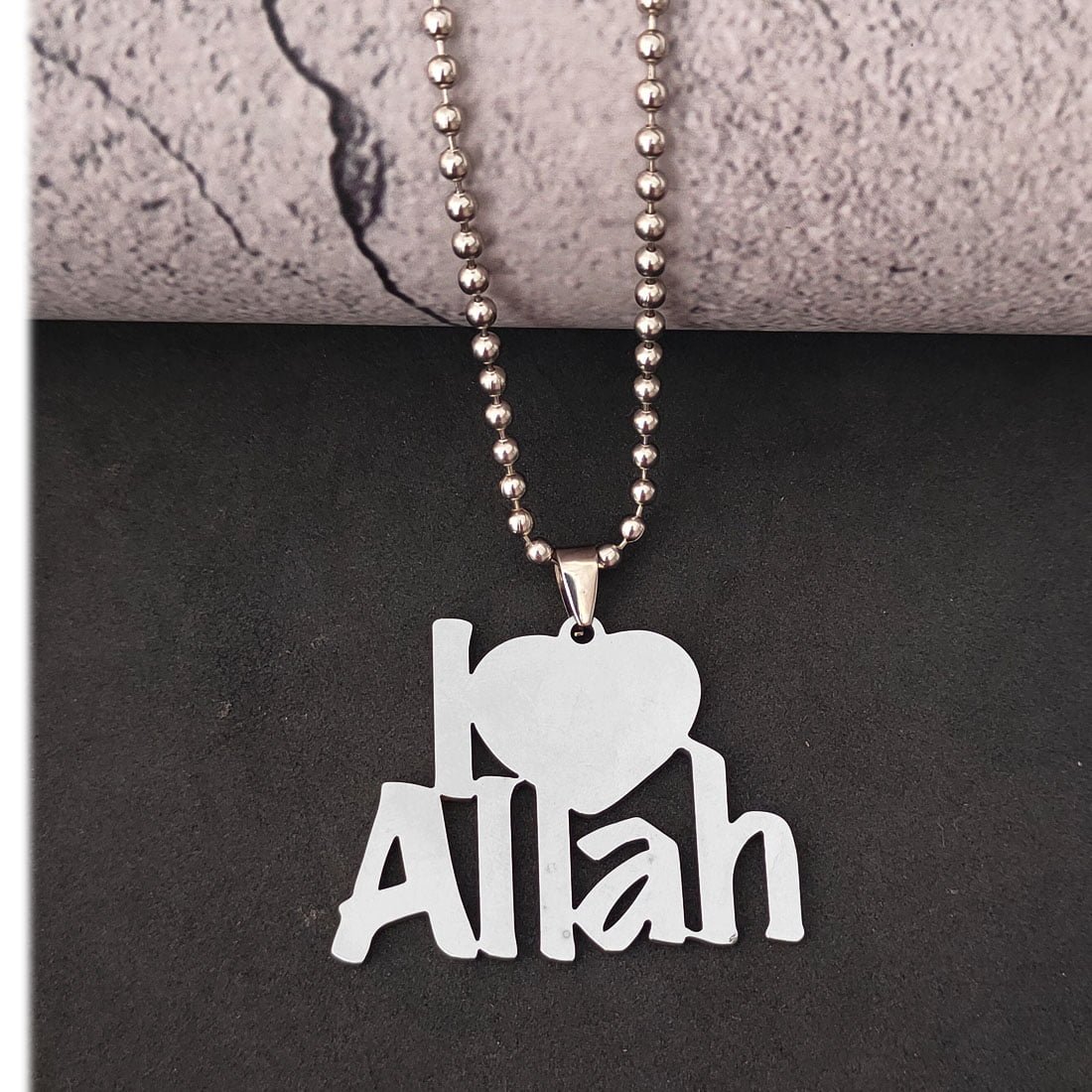 Religious I Love Allah Text Letter Pendant Necklace Gift