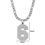 - Jersey Number 0-9 Necklace Personalized Stainless Steel Inspiration Pendant Jewelry for Sports Fan Gift In order to ensure perfect fitment for our customers, each Custom Jersey Number Necklace Each pendant is crafted from High Polished tempered stainless steel in order to stand the test of time throughout a players career. All pendants come with a 26″ Stainless Steel Chain Necklace, and are fitted with a 4mm loop hole in case you would want to use your own necklace.