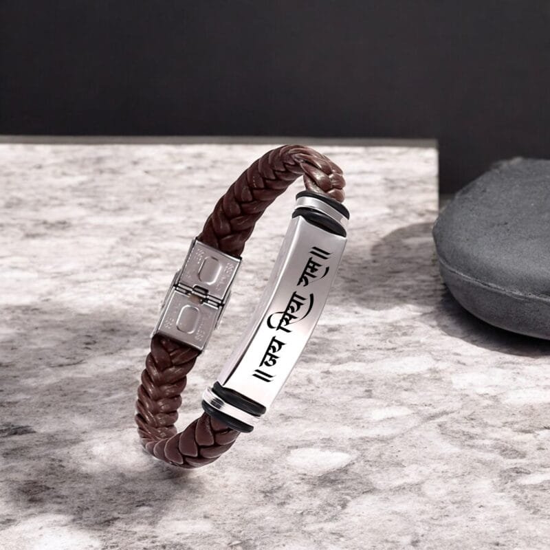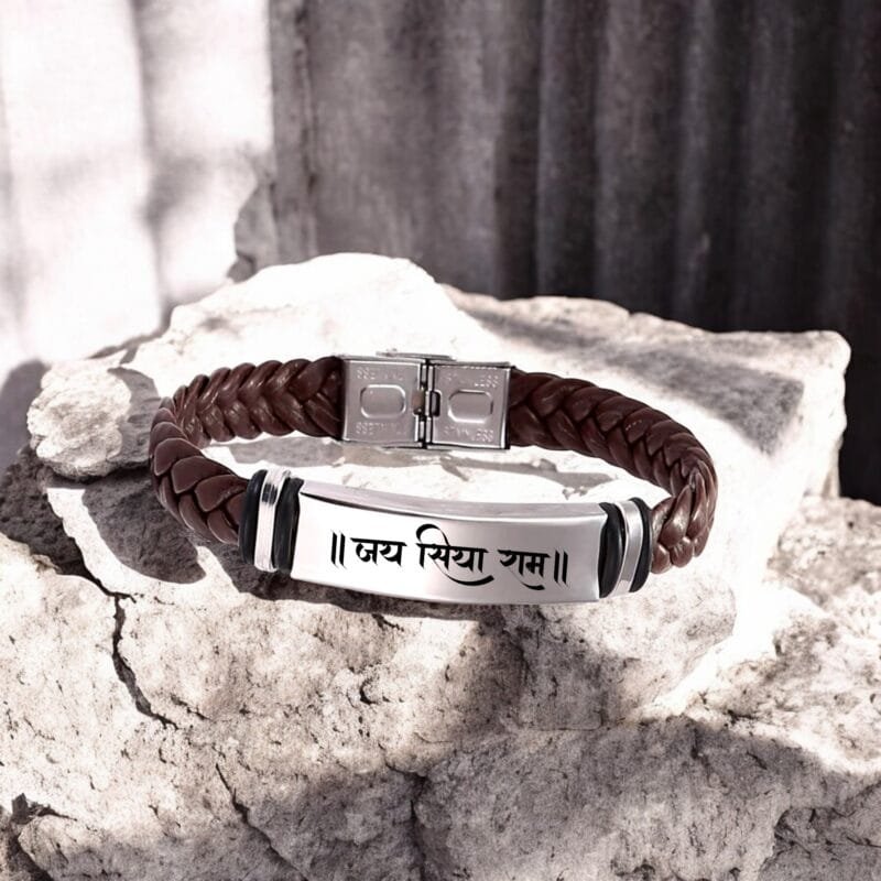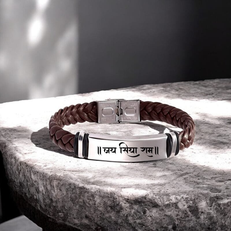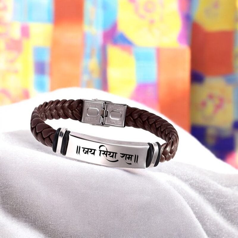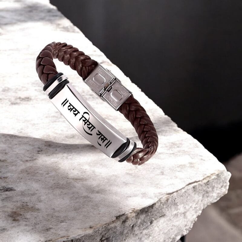 - Jai Siya Ram Leather Weave Bracelet Gift