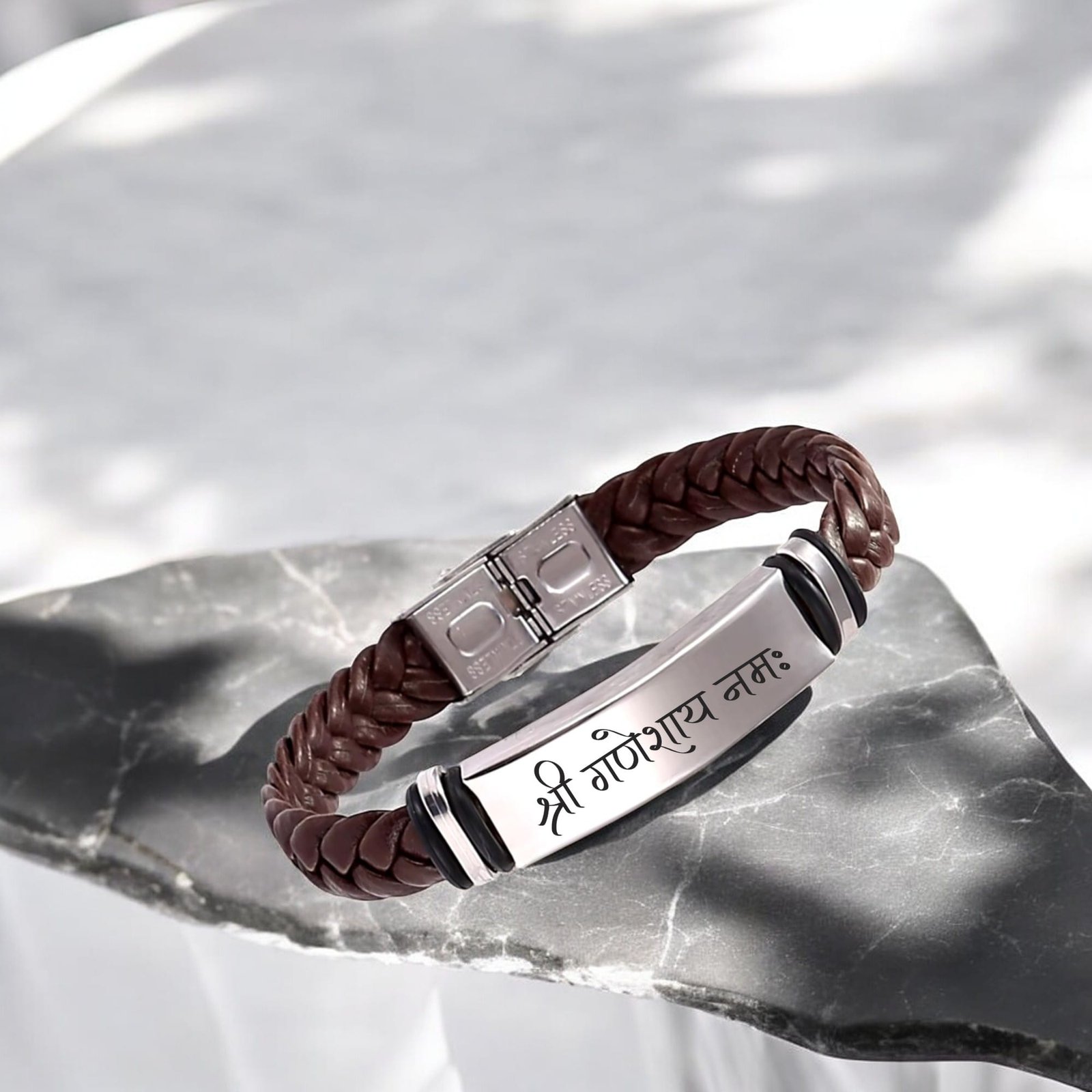 - Shri Ganeshay Namah Leather Weave Bracelet Gift