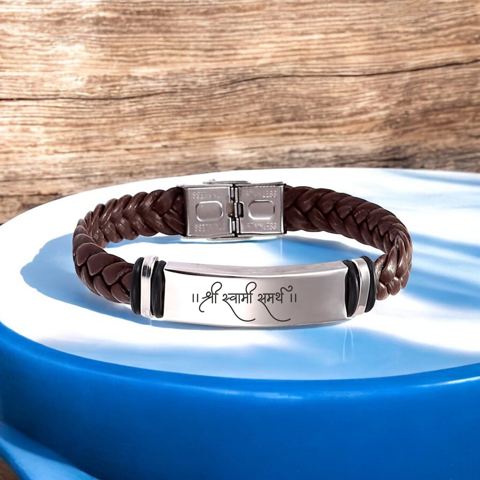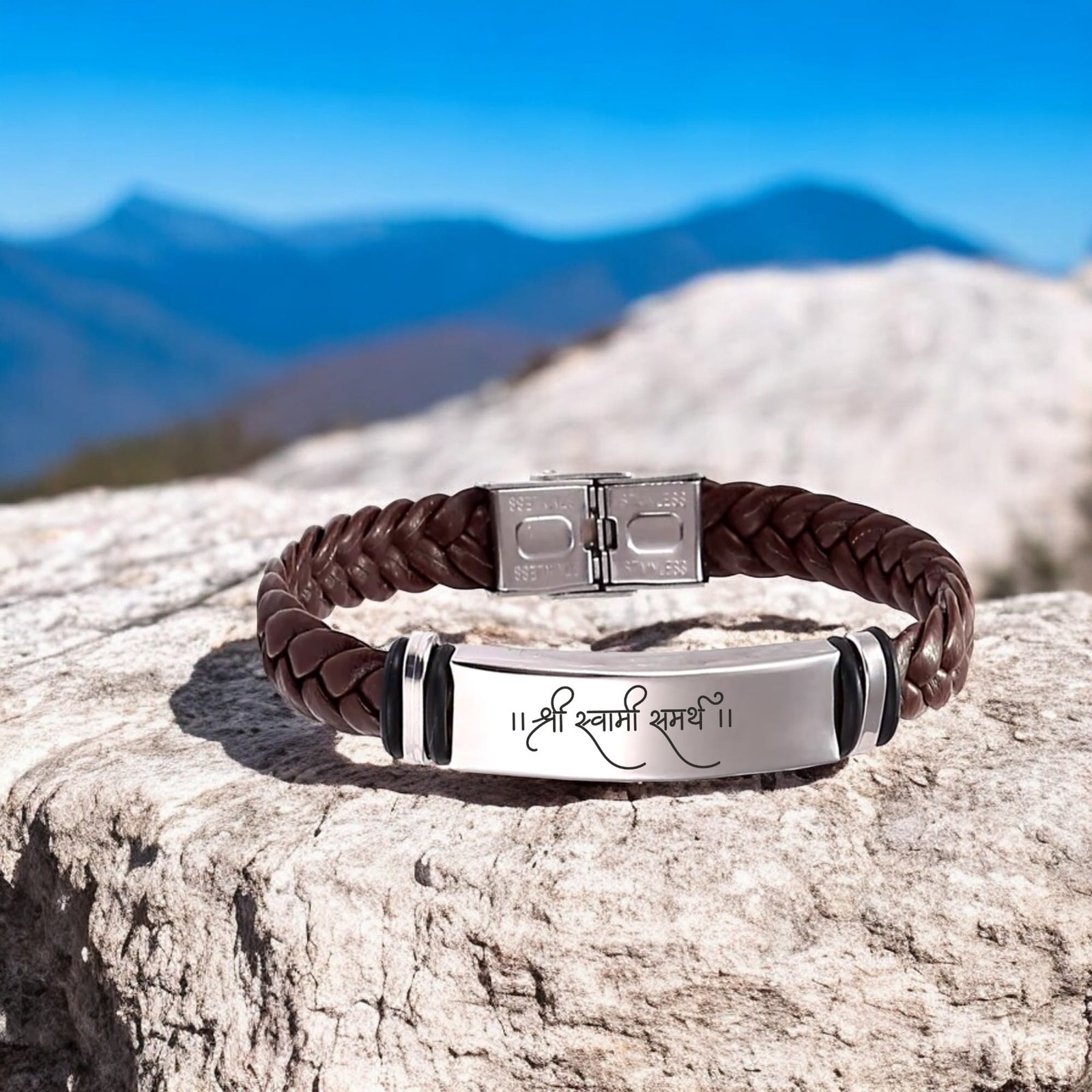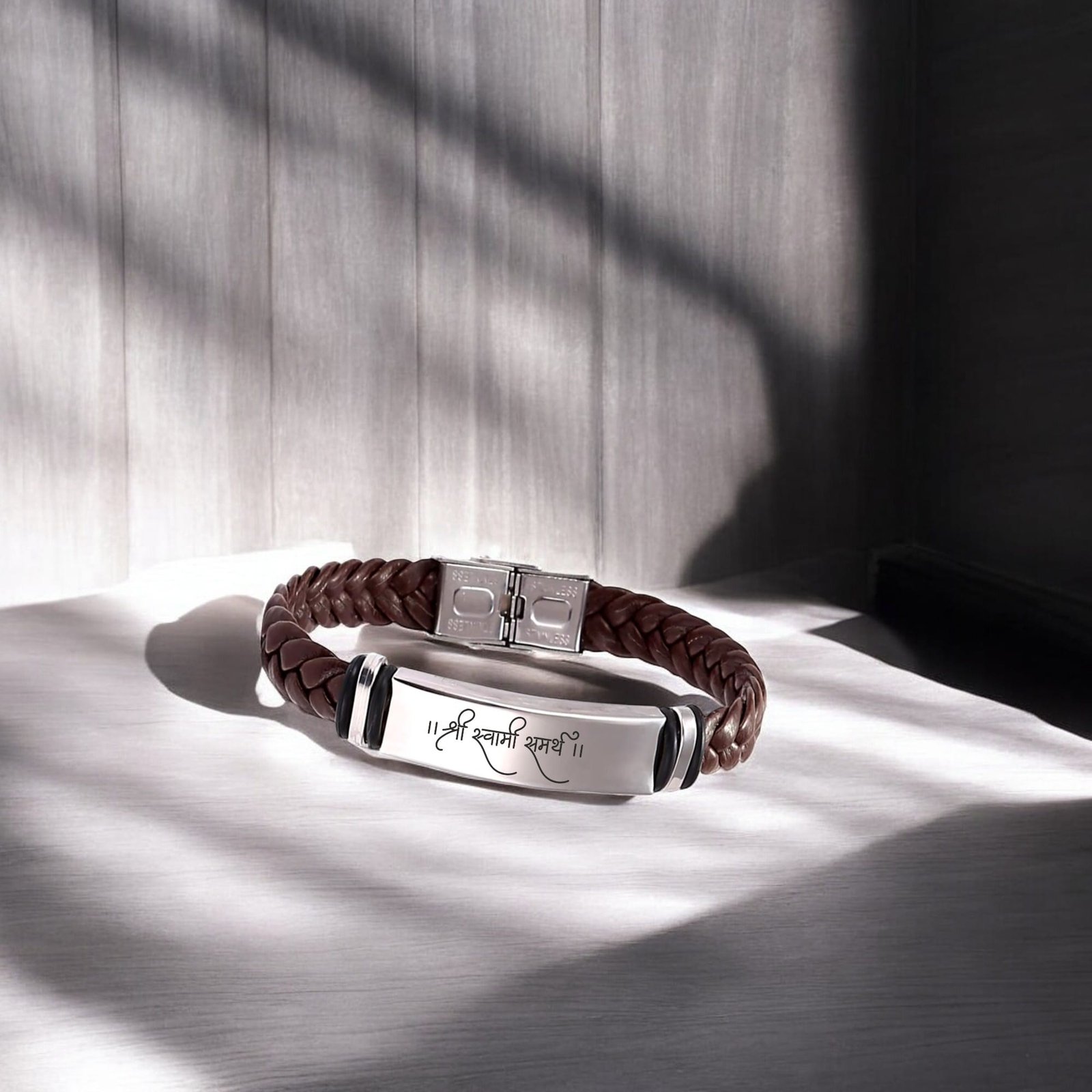 Shri Swami Samarth Leather Weave Bracelet Gift