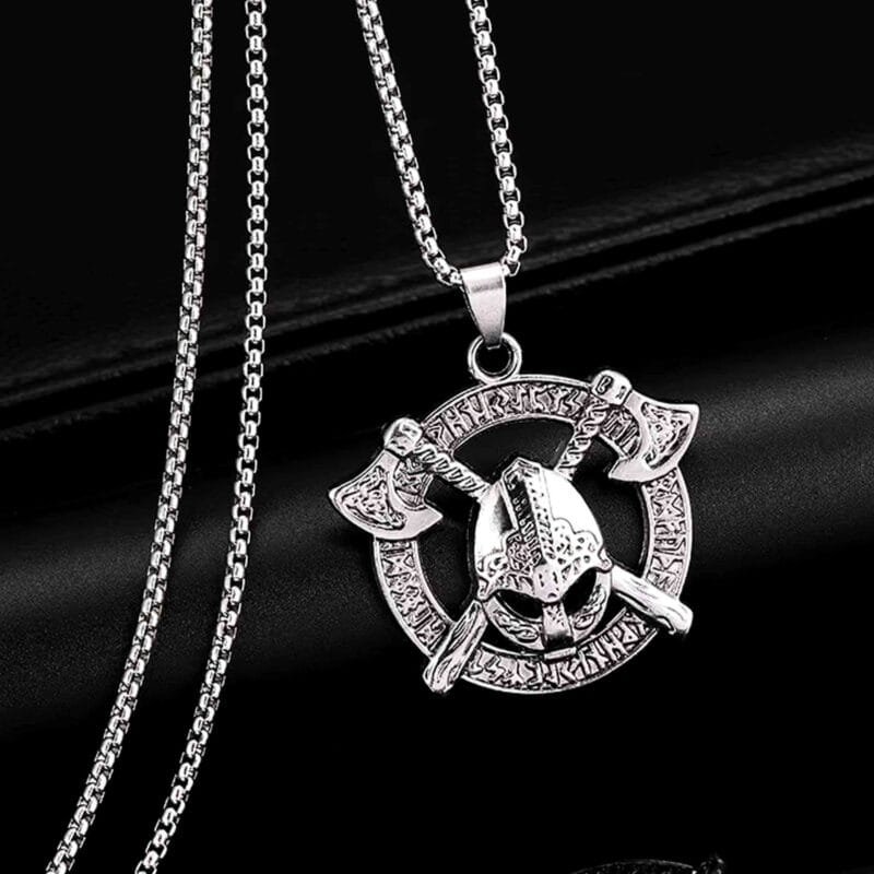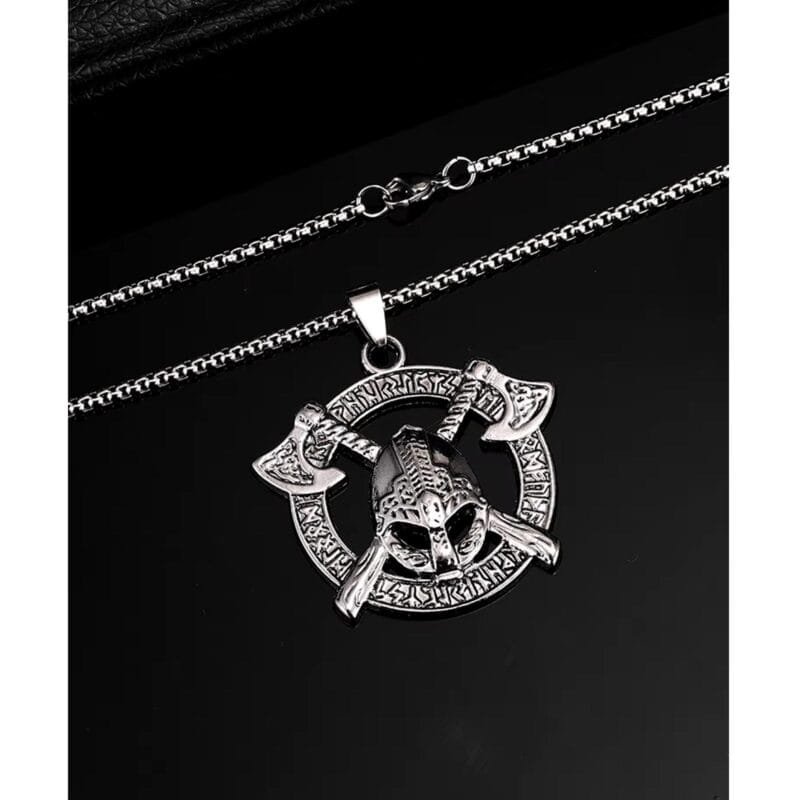 - Axe & Germanic Runes Nordic Warriors Tribal Necklace Gift