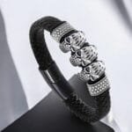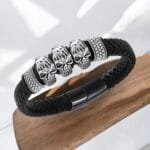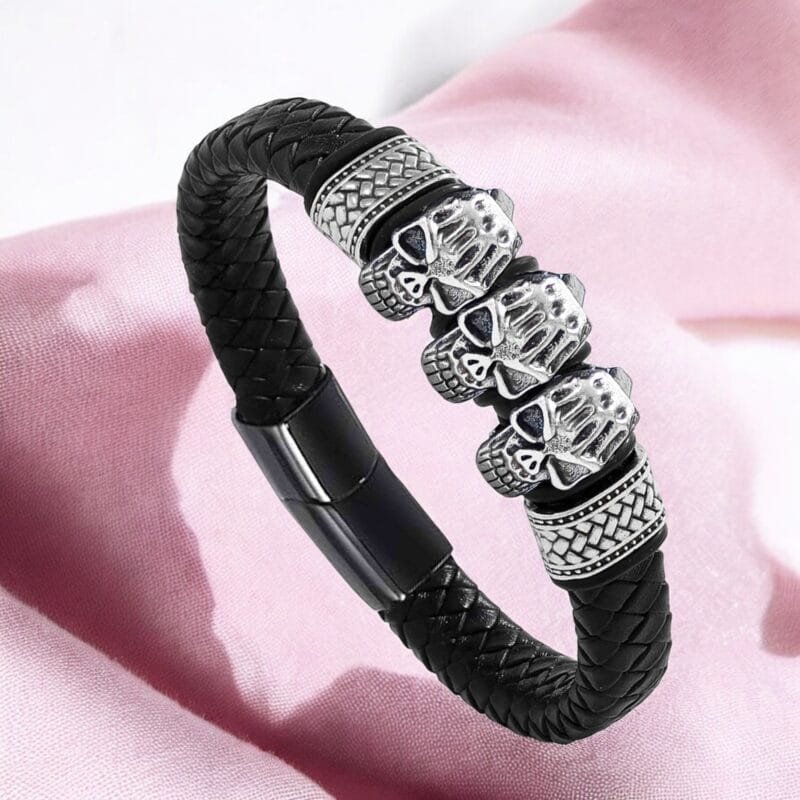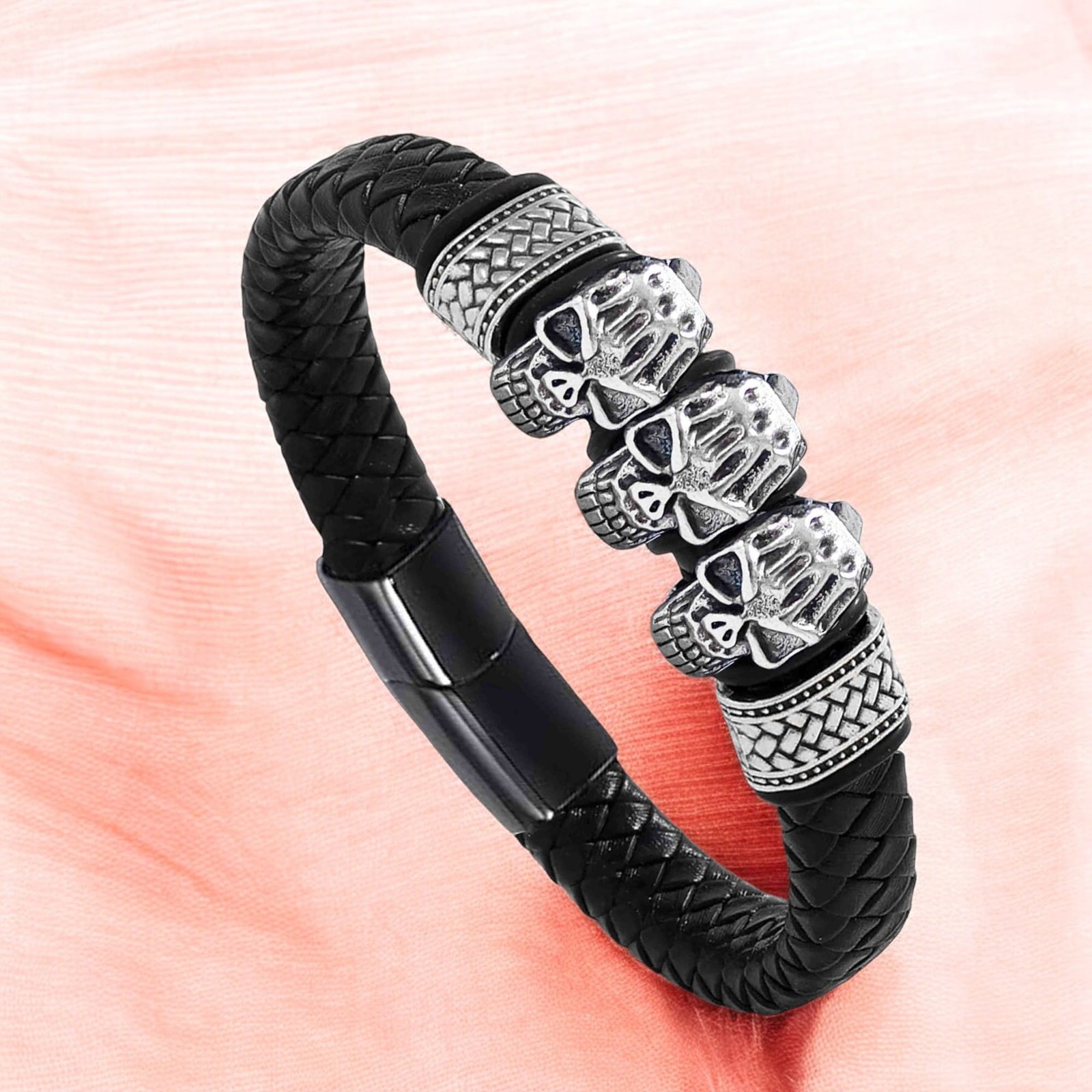 - SKULL BRACELET FOR MEN: Unique and stylish wristband featuring triple skull charm, a powerful symbol of toughness and bravery