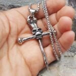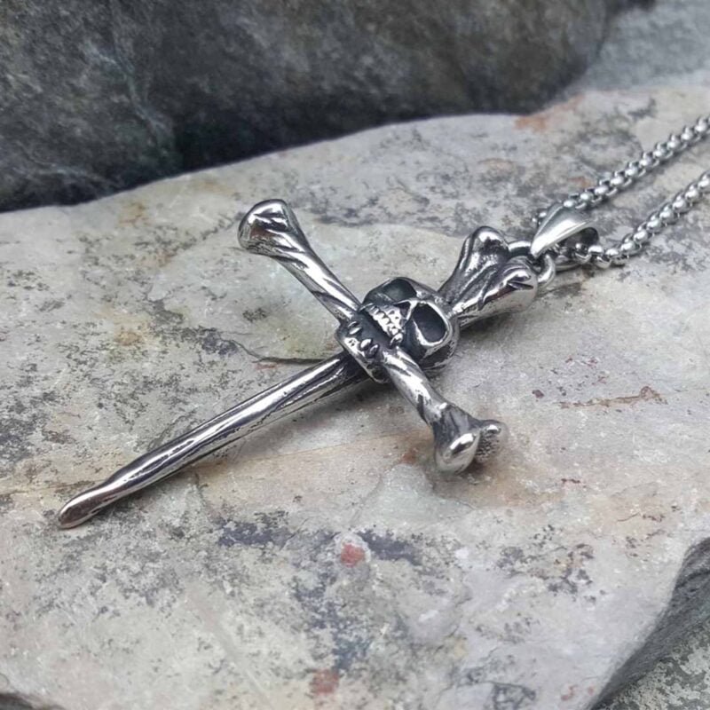 - BOLD SKULL AND CROSS DESIGN – Embrace your edgy side with the unique combination of skull and cross elements on this pendant, adding a touch of punk flair to your Halloween or vintage-inspired look.