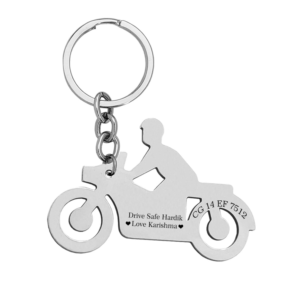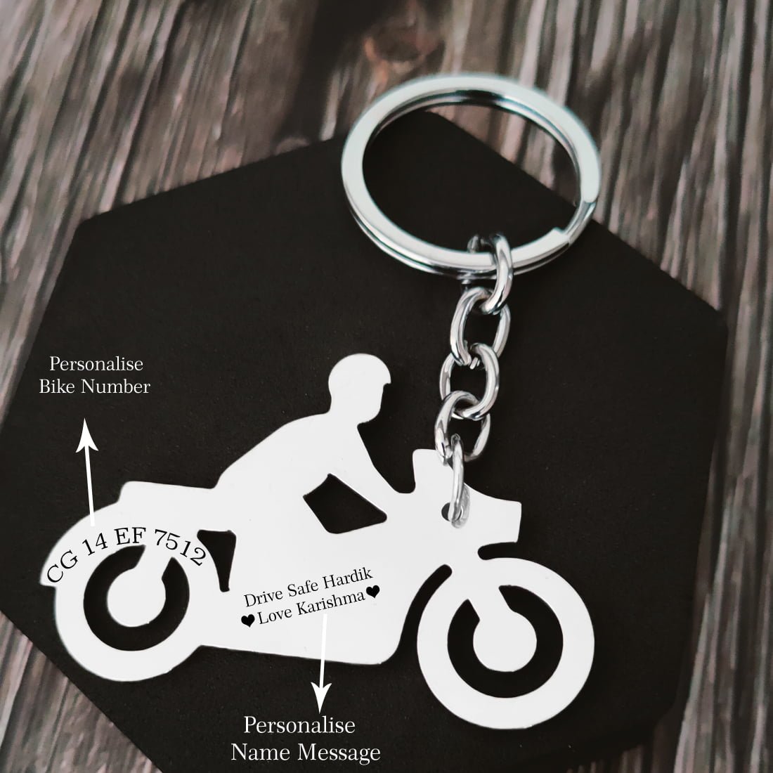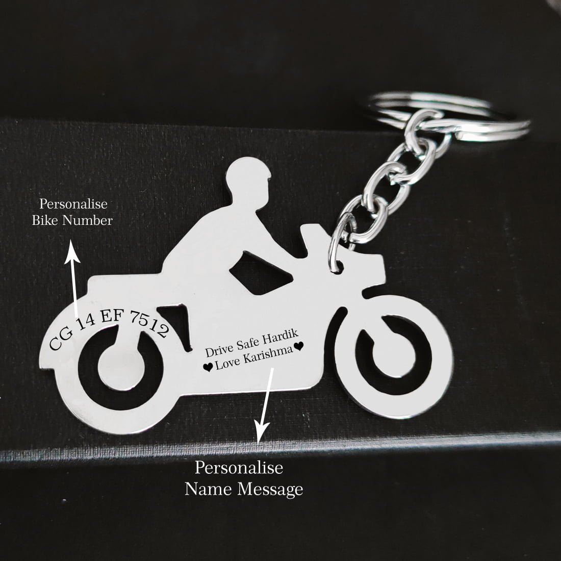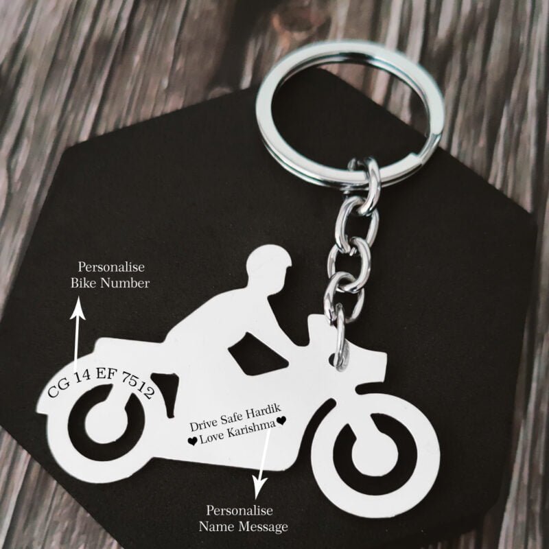 It looks super cool and matches the style of a Royal Enfield bike.Celebrate the amazing bond between a Royal Enfield and its rider with this awesome keepsake. Whether it’s a birthday, anniversary, or just a surprise, our Personalised Bike Keychain will make them really happy and proud.Don’t wait! Get this fantastic gift for your loved ones, or even for yourself. Order your Personalised Bike Keychain now and let the bike adventures begin!