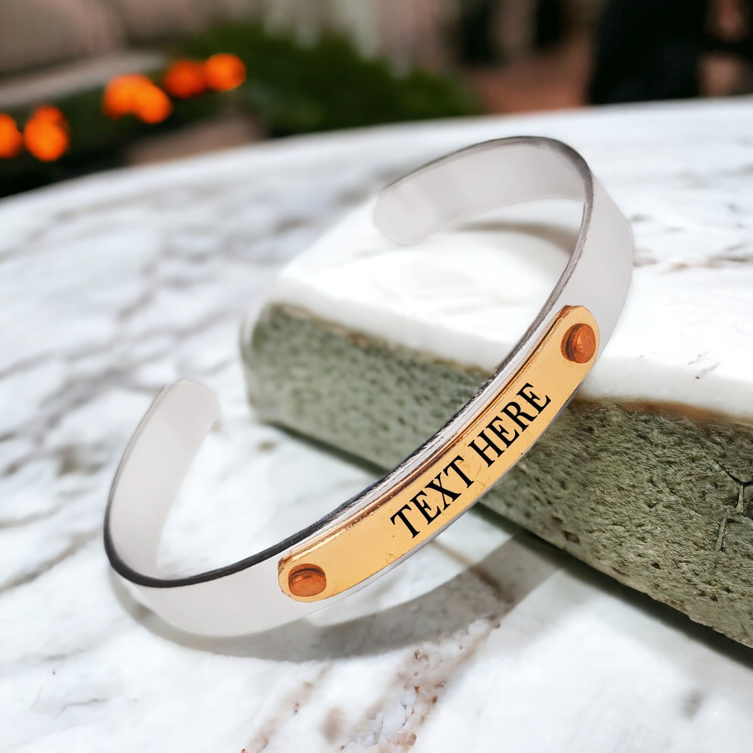Laser customizable personalized id bracelets: Make a special and unforgettable gift for your friends and family by adding a personal laser-engraved message. Celebrate friendship and embrace love of a lifetime. Personalize your bangle with special names, dates, coordinates or inspirational words to the significant one.
