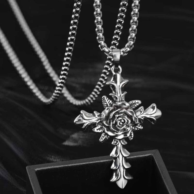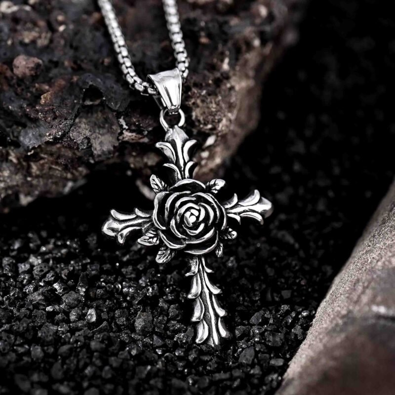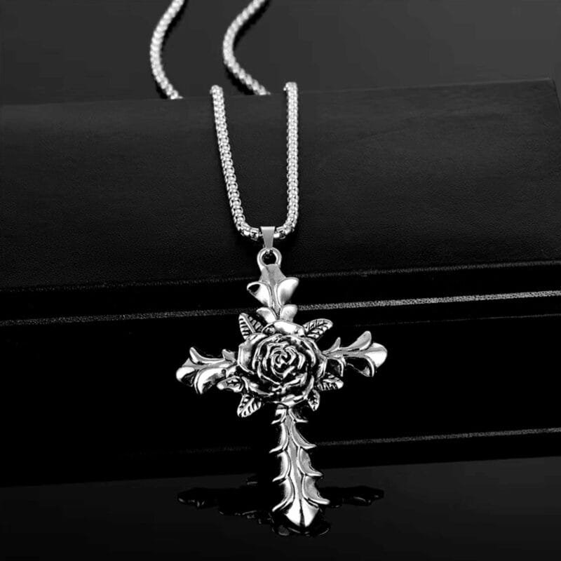 Rose Cross Pendant Necklace
