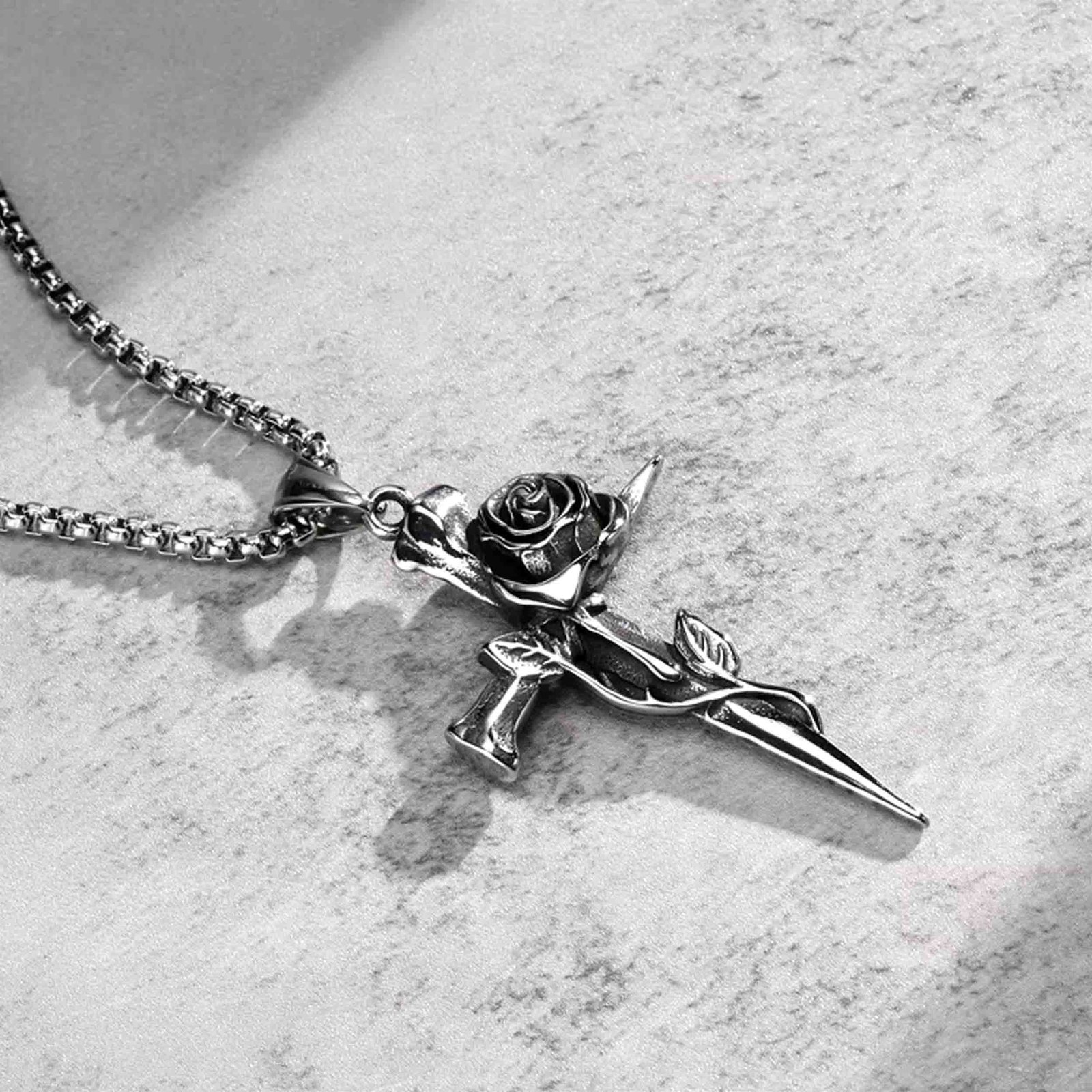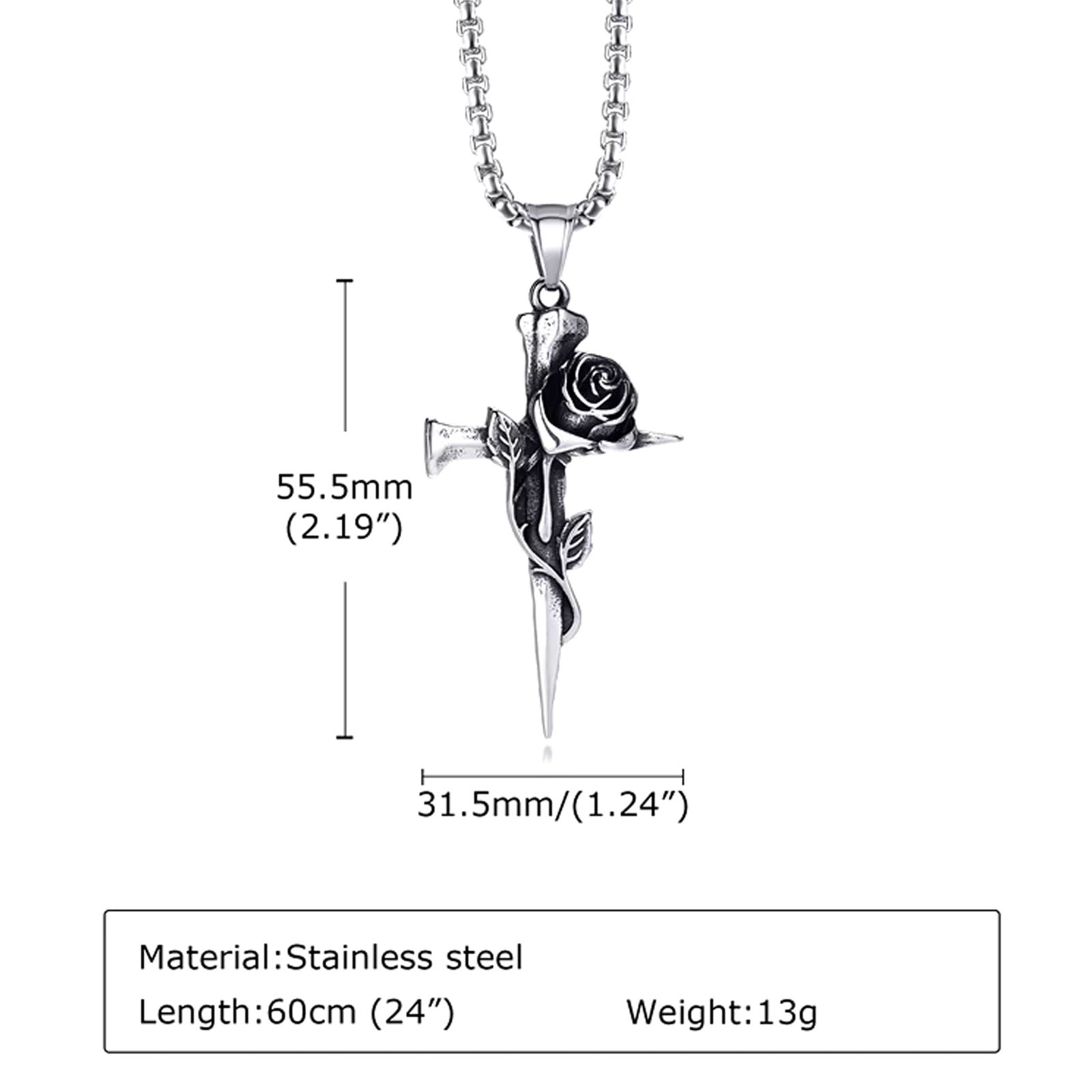• Vintage Cross Pendant Necklace for Men Women Rose Flower Necklace Stainless Steel Gothic Punk Jewelry, Bike Necklaces ,can act as a protector and bring you good luck!