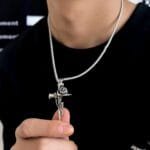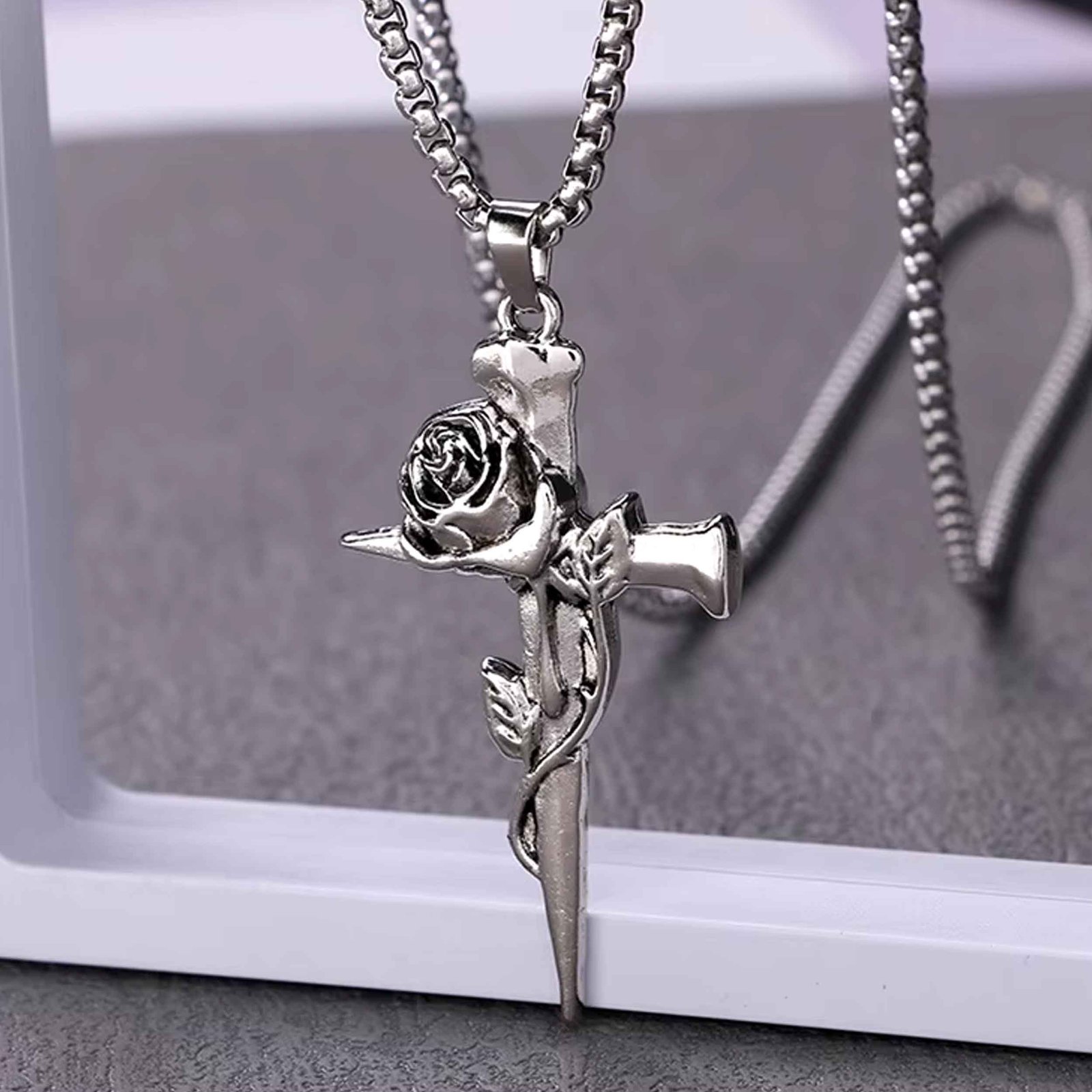 • Vintage Cross Pendant Necklace for Men Women Rose Flower Necklace Stainless Steel Gothic Punk Jewelry, Bike Necklaces with 22 Inch Chain. This men’s pendant necklace features a striking Gothic-style skull design, making it a bold and eye-catching accessory. Ideal for bikers, rock music lovers, and those with a gothic punk aesthetic, it’s a must-have fashion staple.