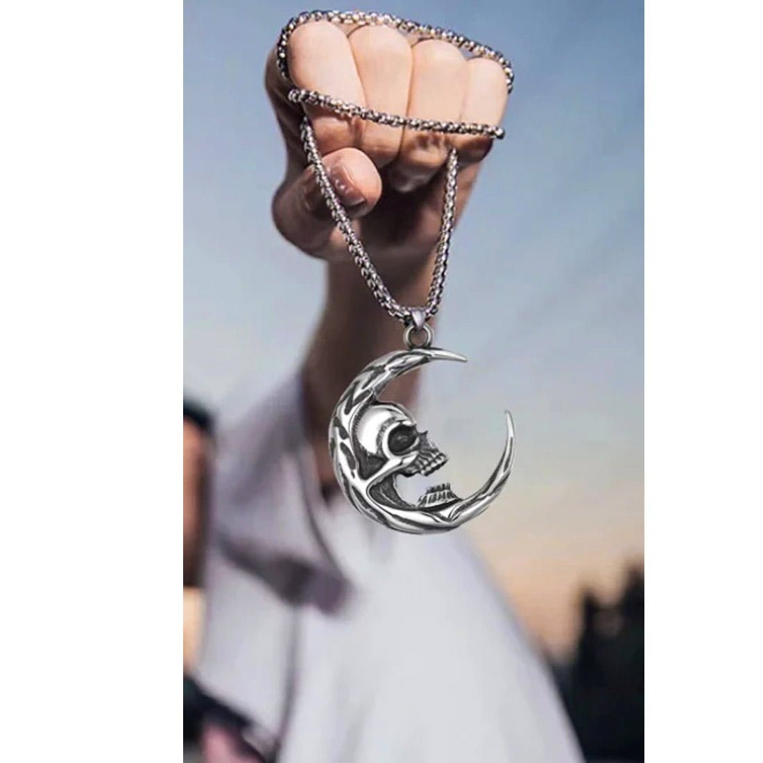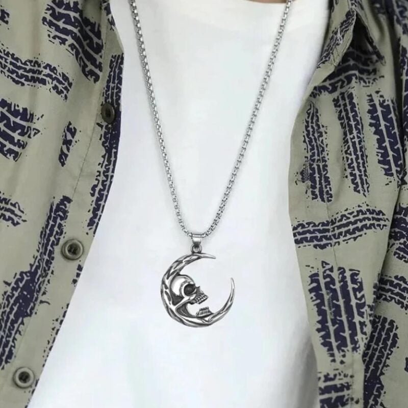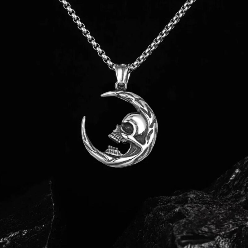 - Skull Head Crescent Moon Necklace Gift
