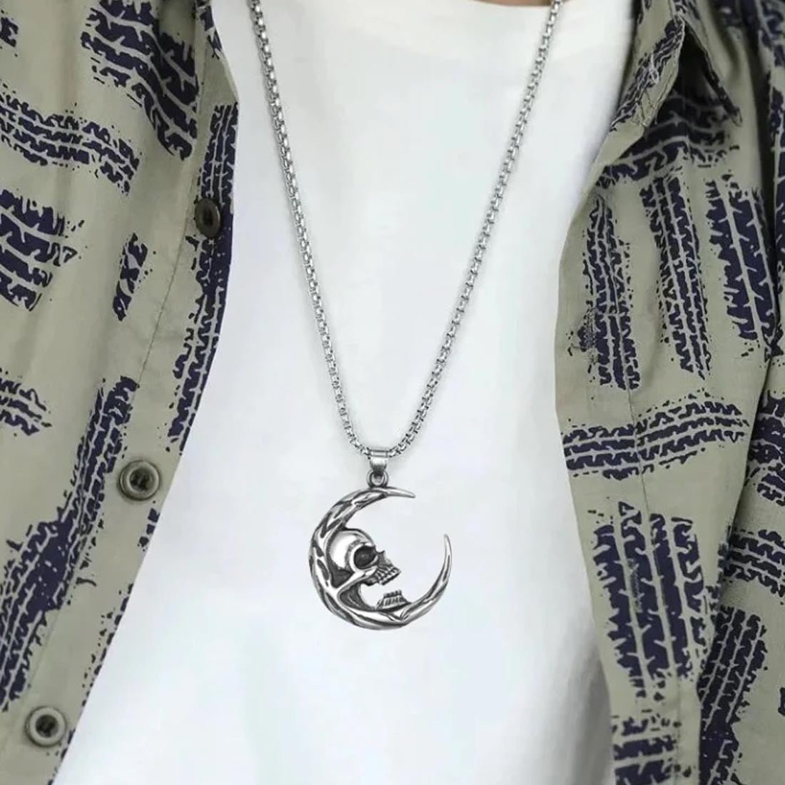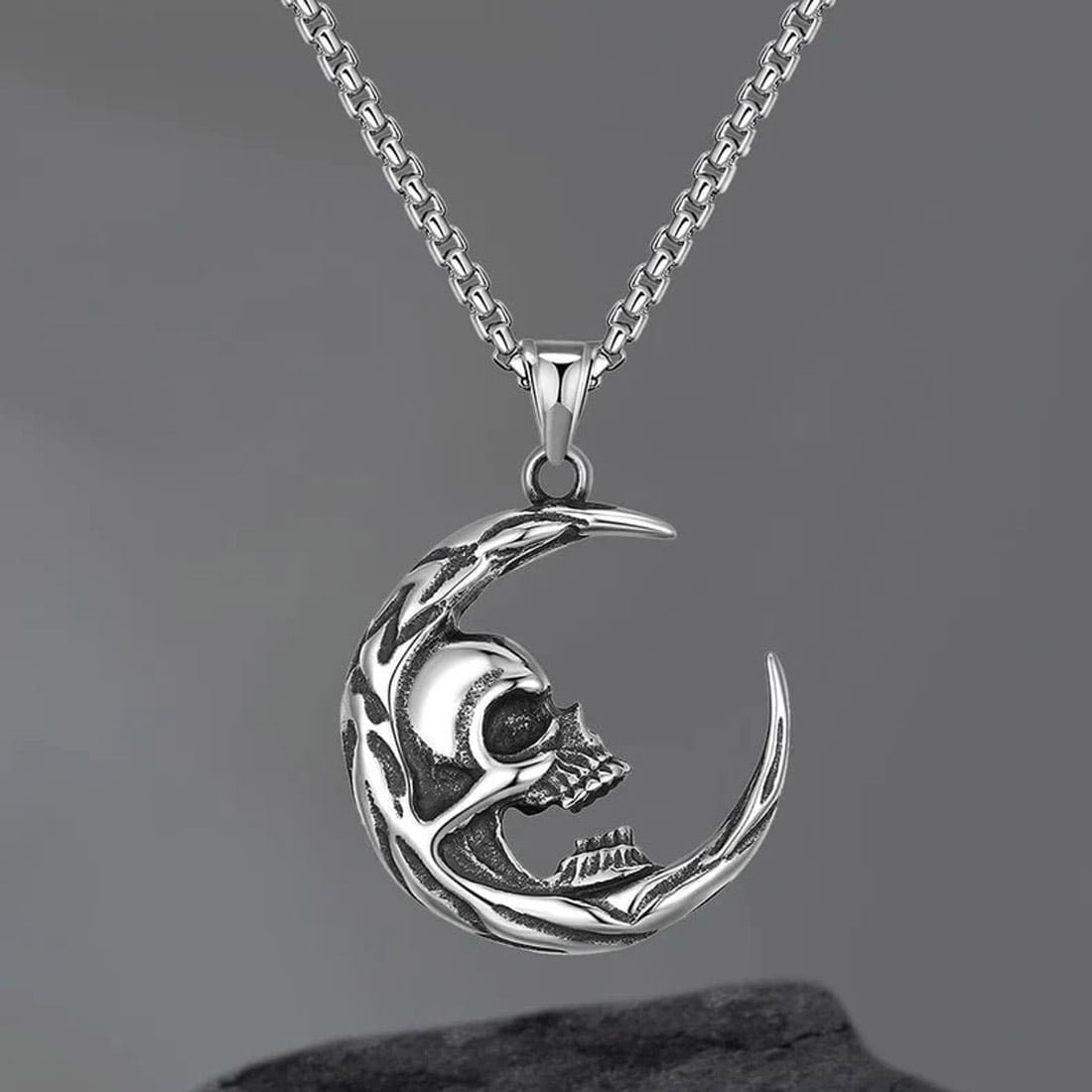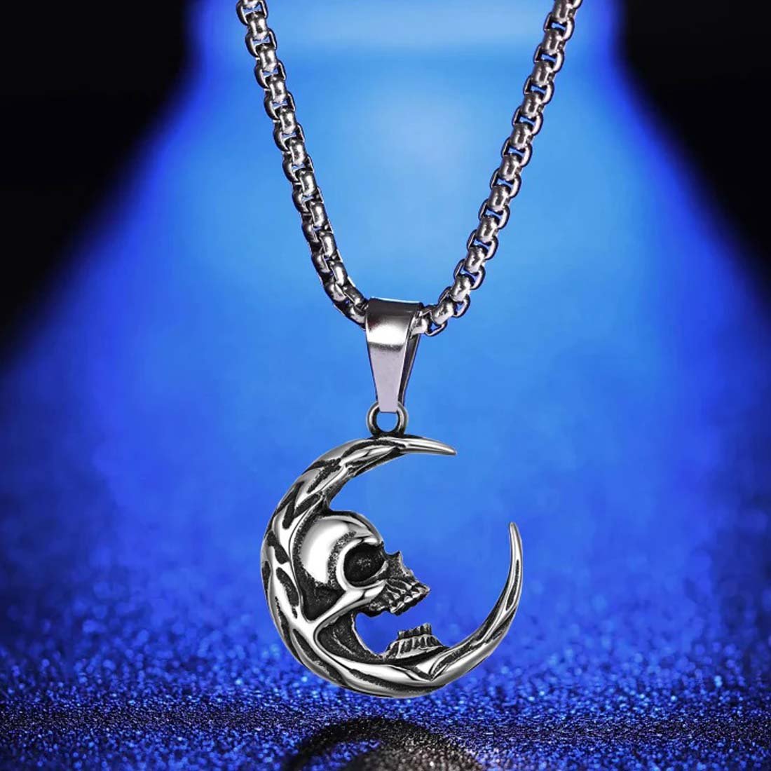 - â–ªPendant Necklace- Unique Design: cool gothic skull head and moon pendant. Vintage and Fashion. You are eye-catching when you wear it in daily.