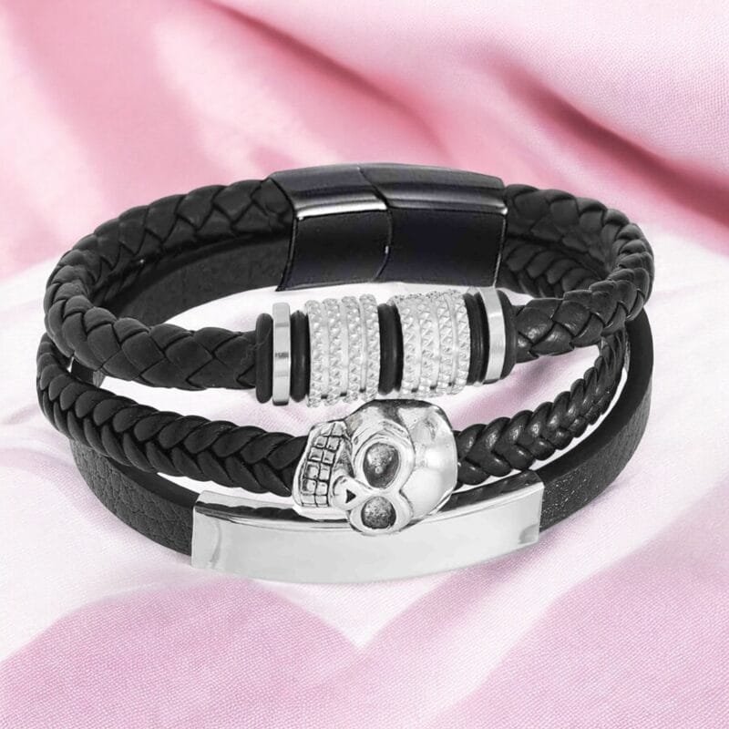 - Skull Design: The skull symbolizes eternity. The skull braided bracelet is made from premium leather and stainless steel and retains its stylish look while withstanding everyday wear and tear.