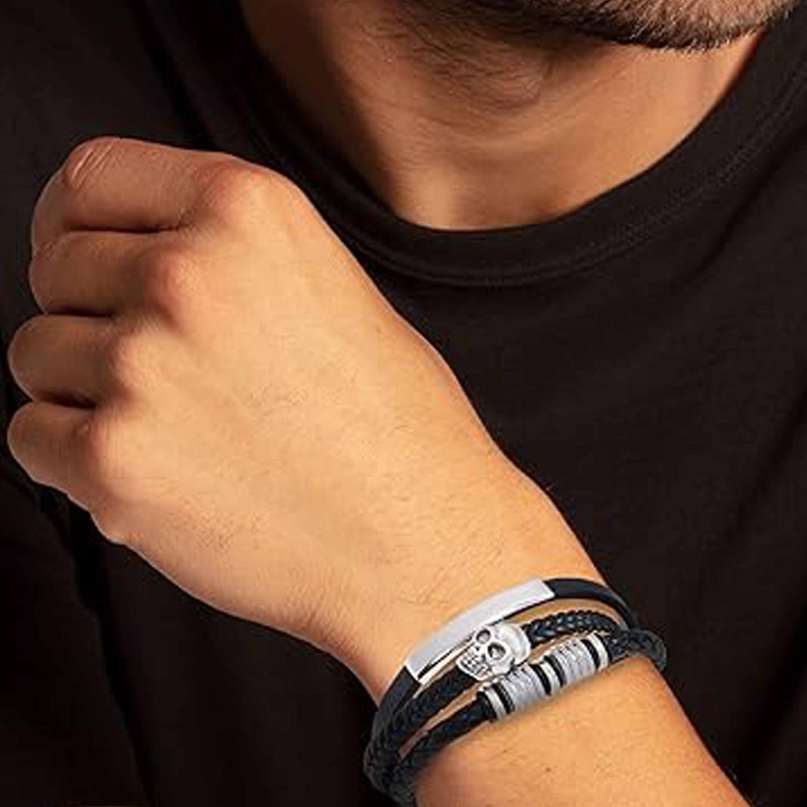 - SKULL BRACELET FOR MEN: Unique and stylish wristband featuring triple skull charm, a powerful symbol of toughness and bravery