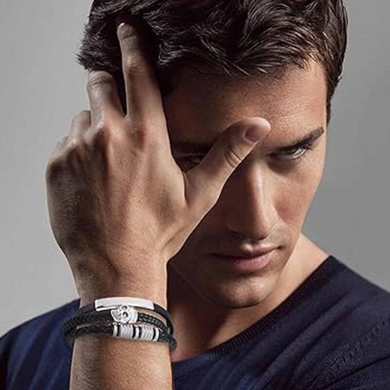 - Leather bracelet: Men’s leather bracelet, classic style, simple design. This leather bracelet goes well with most of your outfits, suitable for any occasion, and will definitely attract the attention of others.