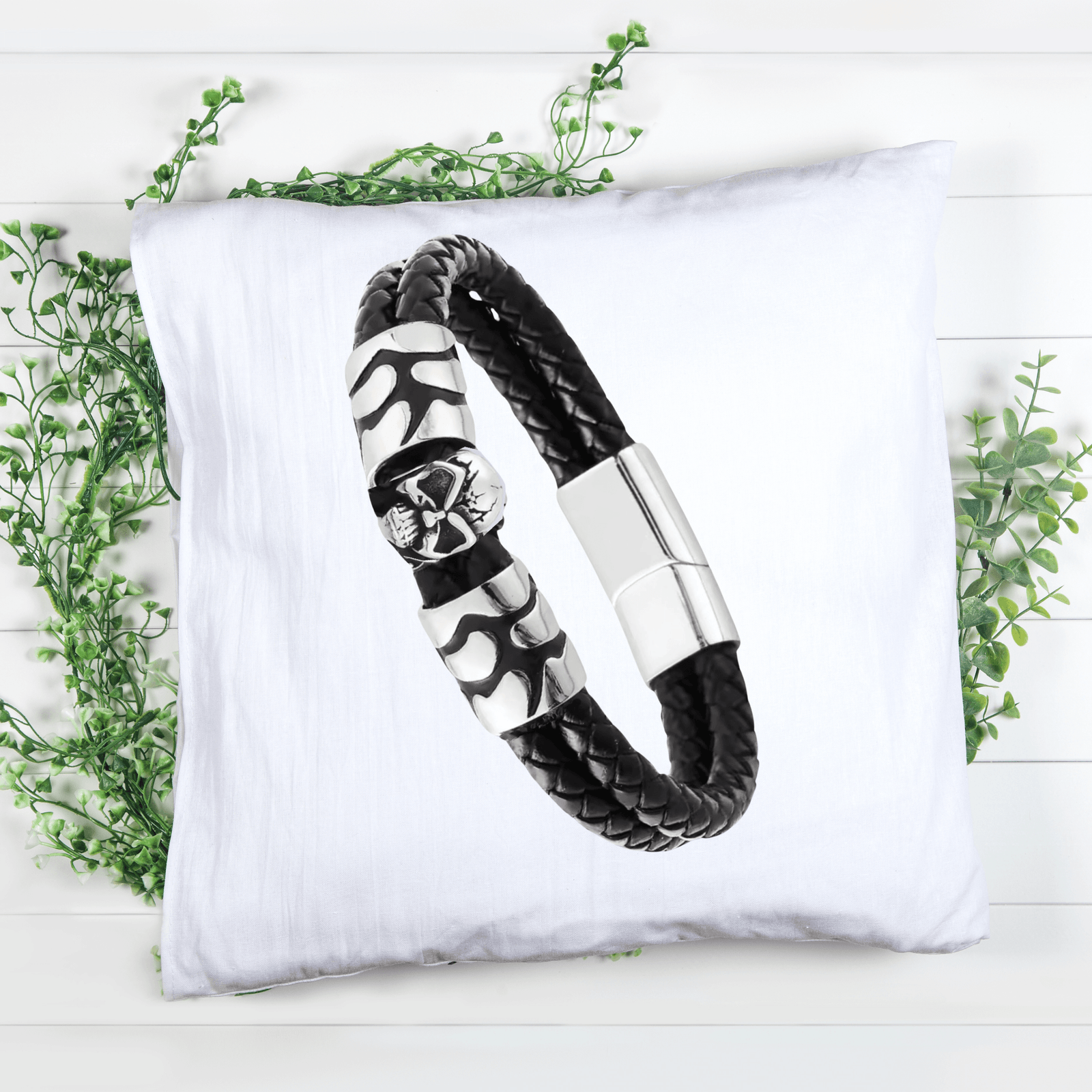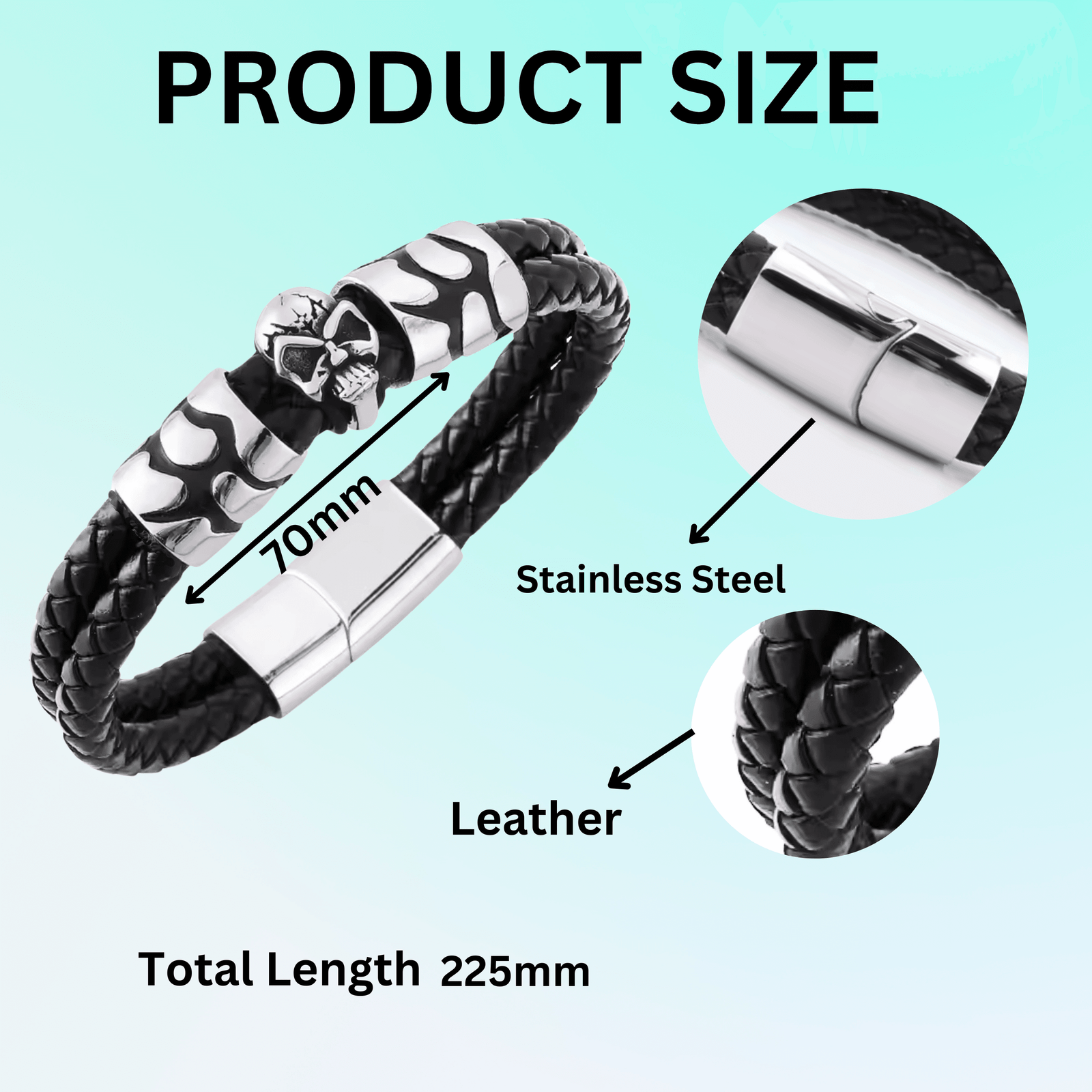 - Skull Design: The skull symbolizes eternity. The skull braided bracelet is made from premium leather and stainless steel and retains its stylish look while withstanding everyday wear and tear.