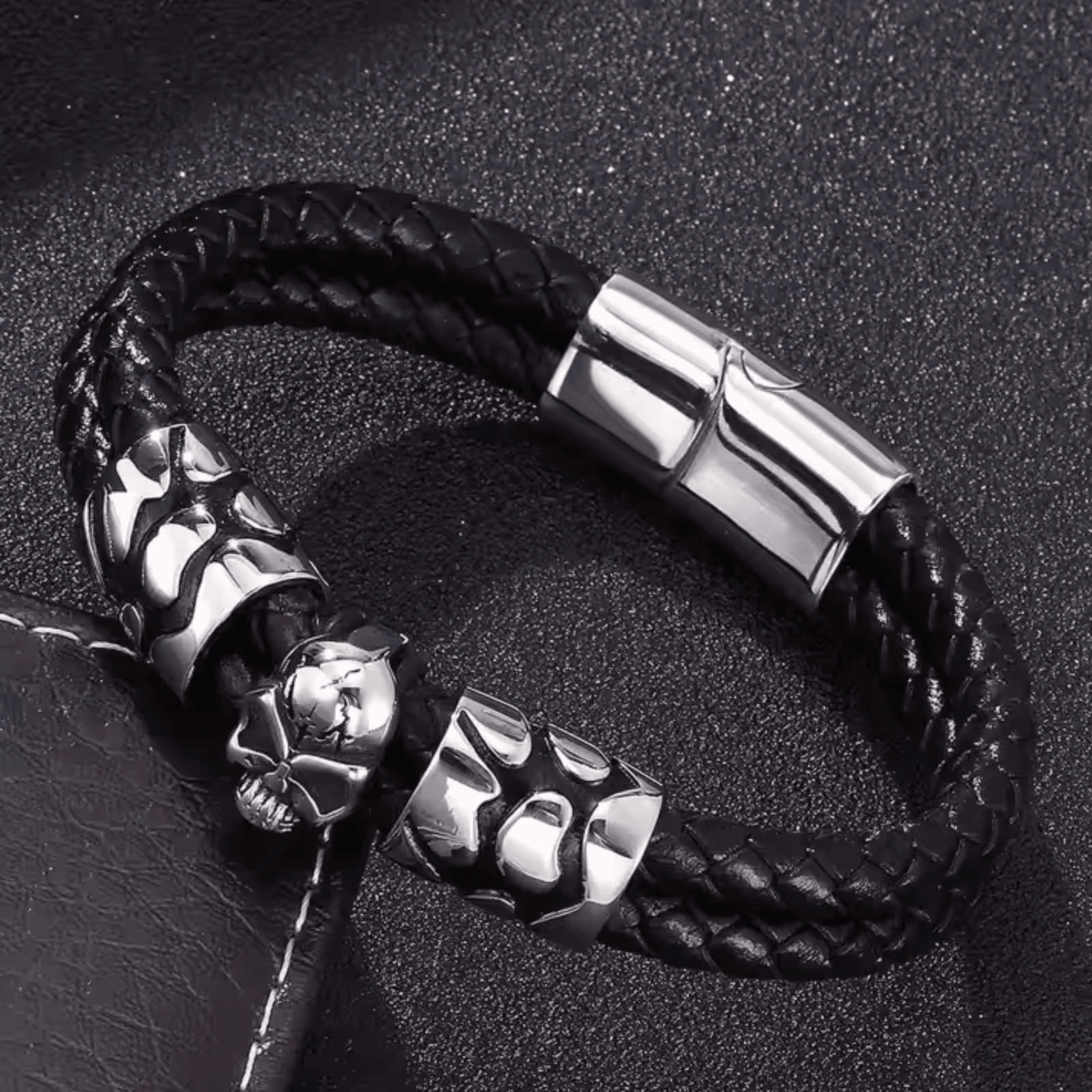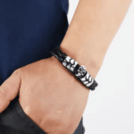 - Premium Quality: Skull leather bracelet with skull and 2 beads along the leather strap, made of high-quality stainless steel, lead and nickel-free, hypoallergenic.