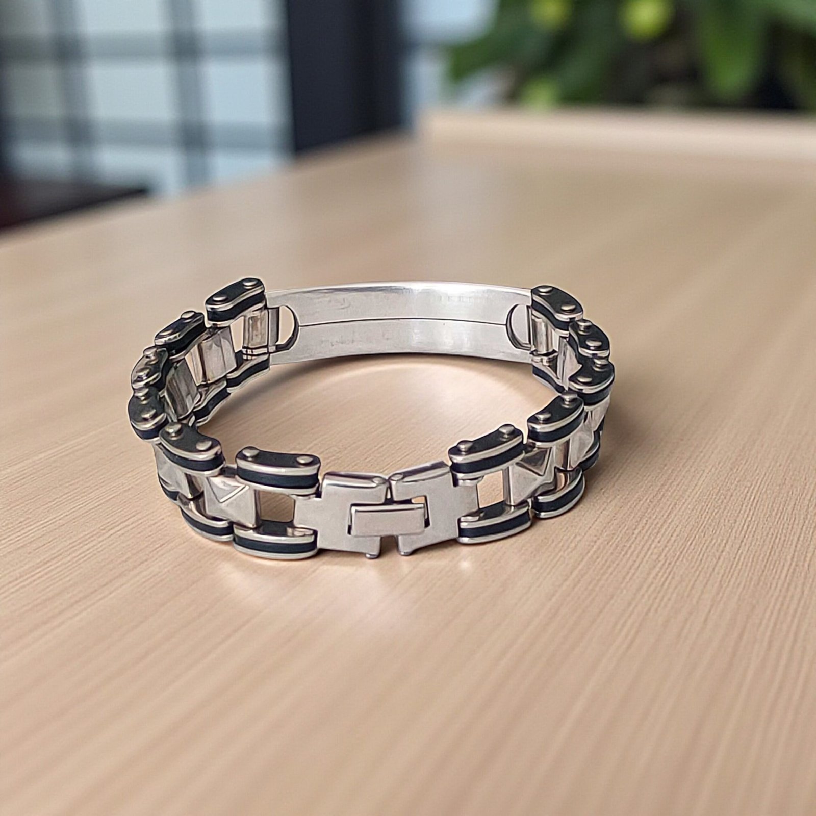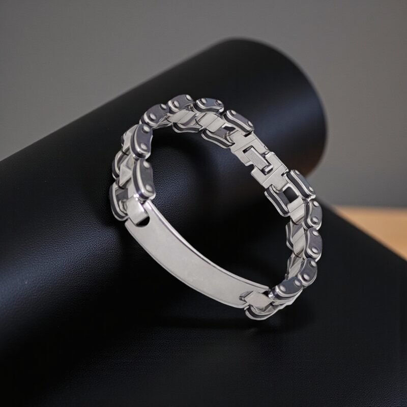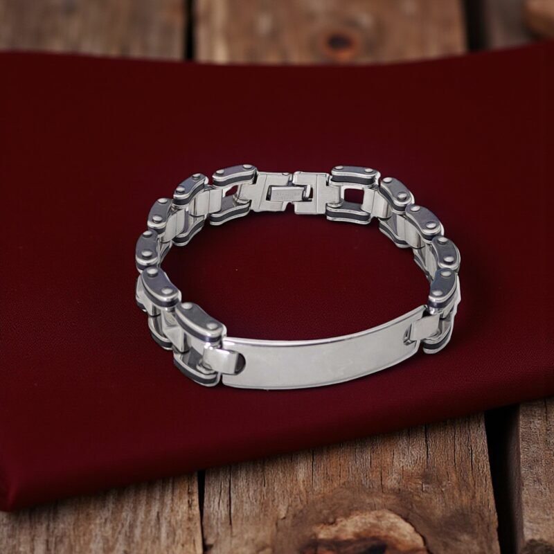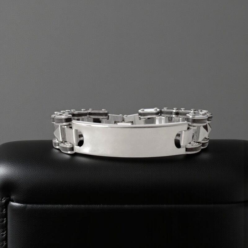 - Make a statement without saying a word. This Heavy-Duty Men’s Chain Bracelet features a chunky, industrial-style design that captures strength and resilience. Made from high-grade stainless steel, it’s built to handle your everyday hustle—whether you’re on the bike, in the gym, or out with the crew. The large ID plate is ready for custom engraving—ideal for marking your name, a significant date, or an inspiring quote. Its mechanical chain look adds an edge to your outfit while the secure clasp ensures it stays with you wherever you go. For the man who carries strength in style—this bracelet doesn’t just accessorize, it represents.