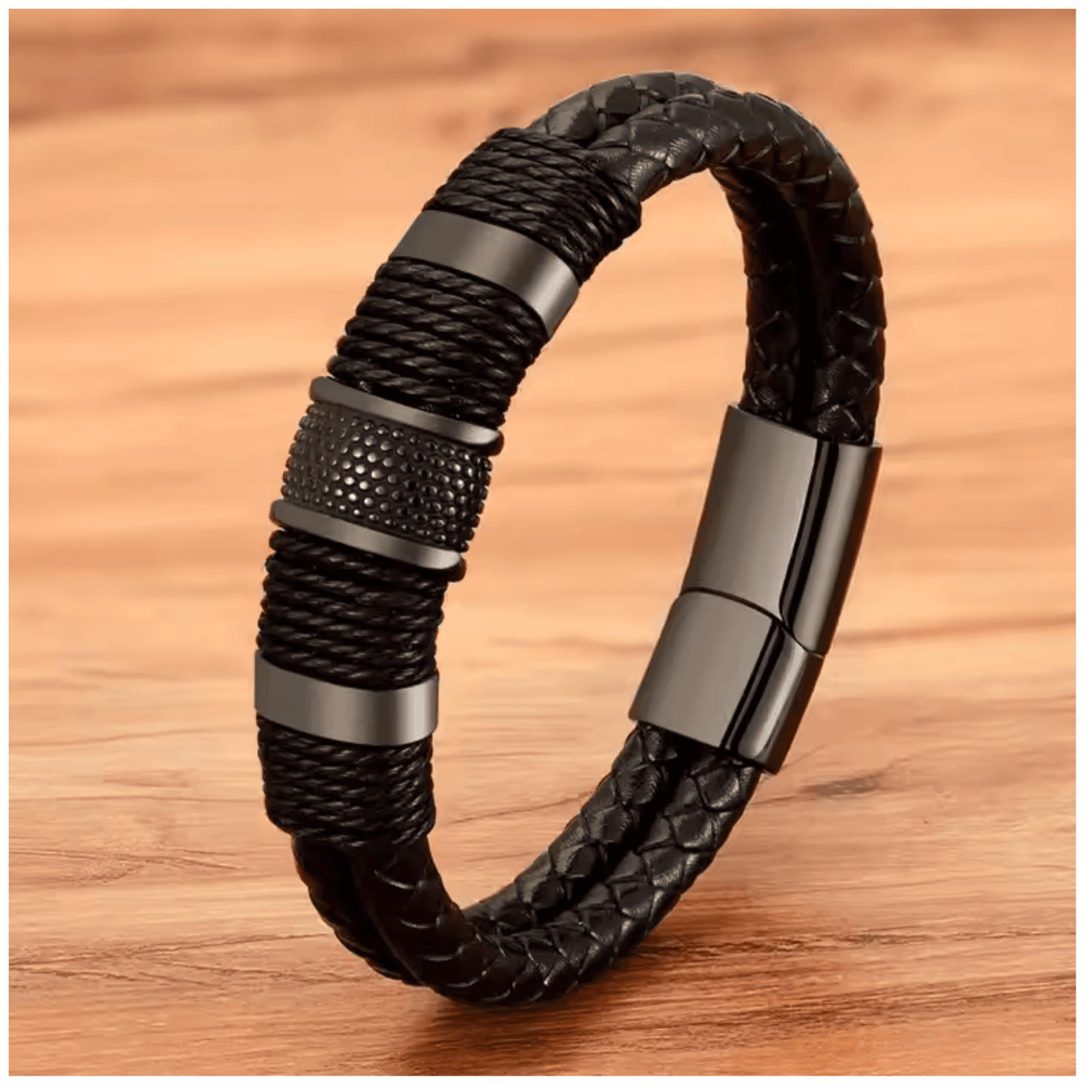- ELEGANT LEATHER BRACELET FOR MAN: This bracelet for men rugged rope braiding with sleek metal details, offering a stylish juxtaposition. The double layer design gives it depth and dimension, making it a unique accessory that stands out, whether paired with casual streetwear or more polished ensembles.