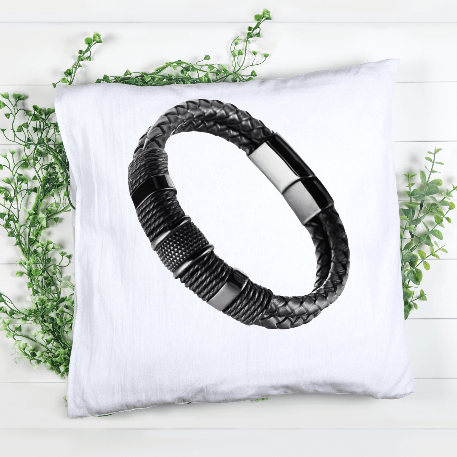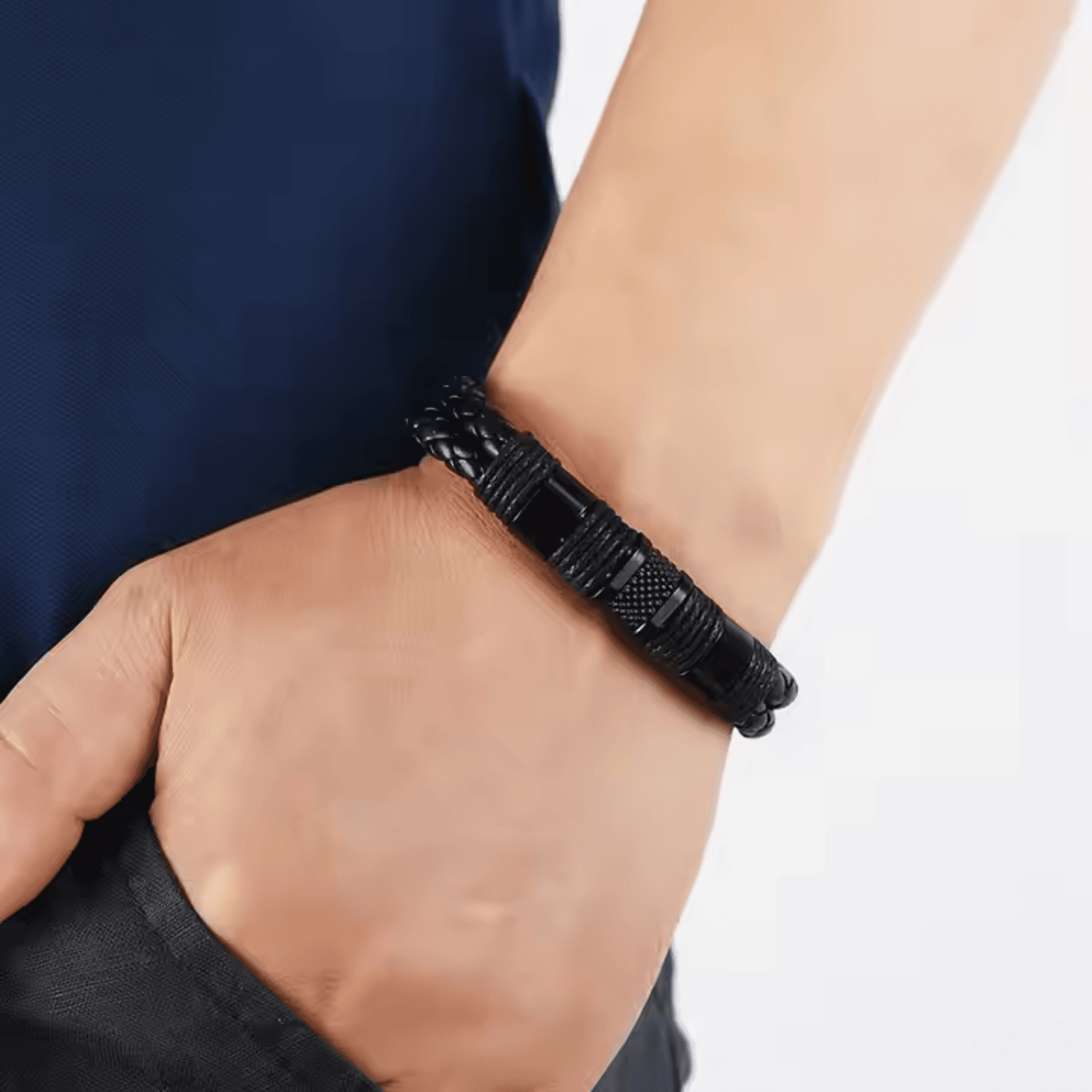 - PERFECT GIFT: This hand bracelet for men makes an excellent gift for men of all ages due to its universal appeal. Whether for a birthday, anniversary, or just to show appreciation, its thoughtful design and quality craftsmanship are sure to be appreciated by anyone. COMFORTABLE FIT: The black bracelet for men is designed for comfort as well as style. Its lightweight nature and flexible rope braiding ensure it fits comfortably on the wrist without causing irritation, allowing for all-day wear.