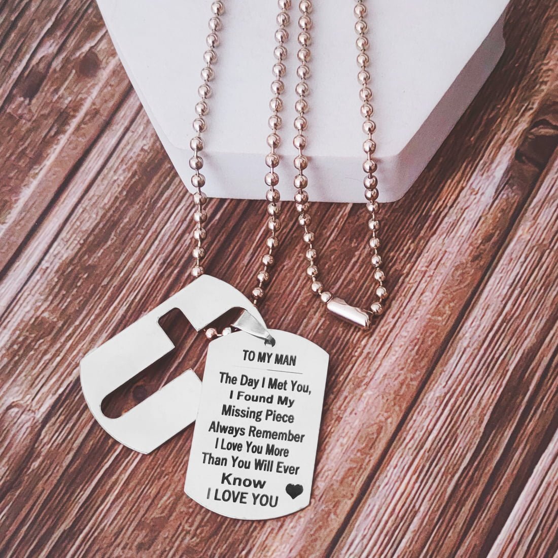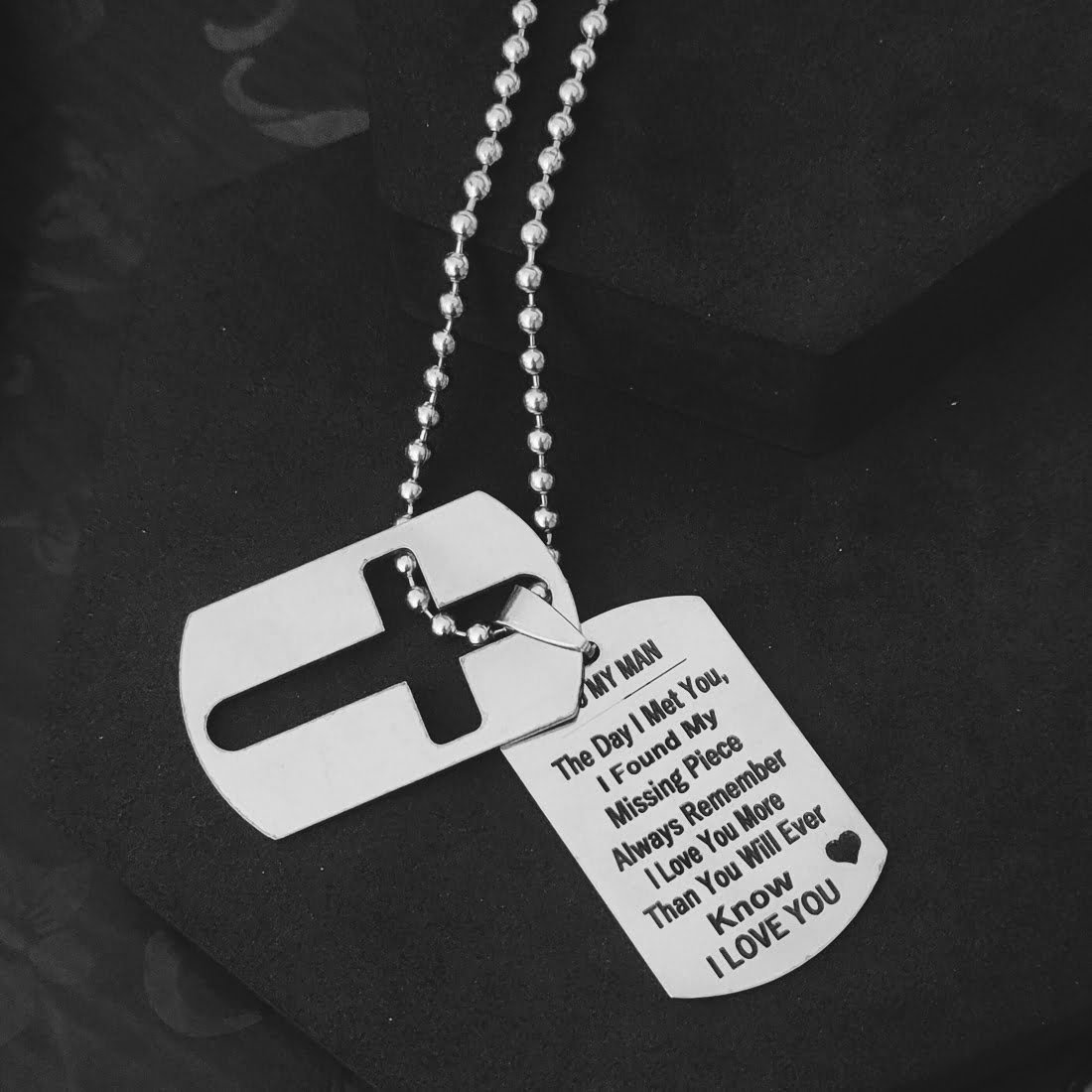 - To My Man Necklace: To My Man The Day I Met You I Found My Missing Piece, You Complete Me and Make Me a Better Person. I was a Little Late to Be Your First, But I Want All of My Lasts to Be With You. I Love You.