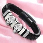- SKULL BRACELET FOR MEN: Unique and stylish wristband featuring triple skull charm, a powerful symbol of toughness and bravery