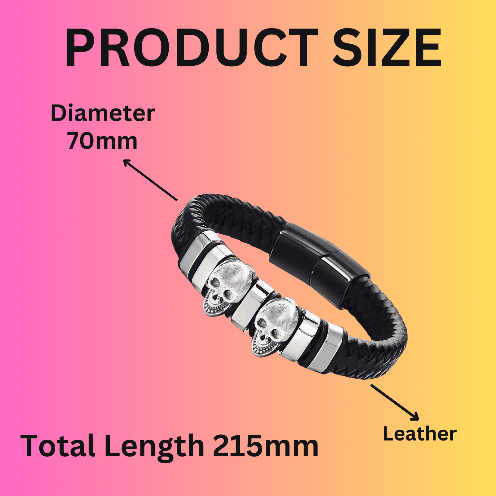 - PERFECT SIZE: The skull bracelet measures 8.46 inches in length