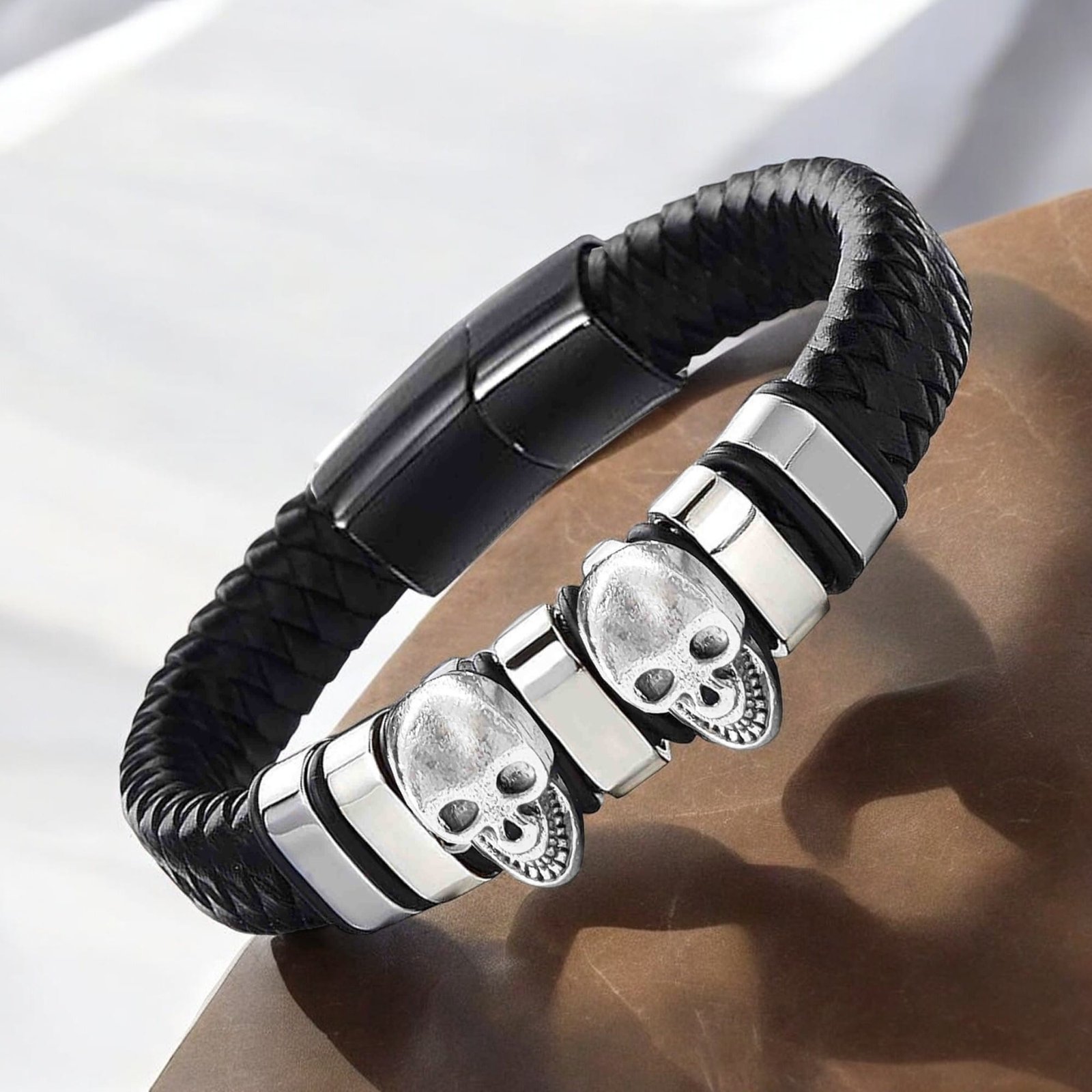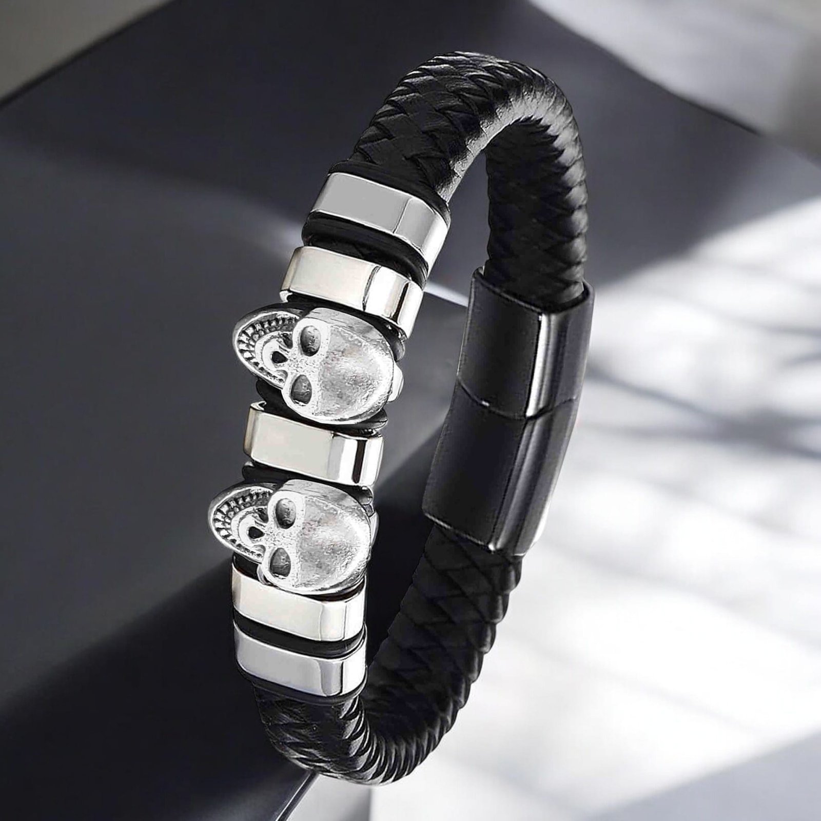 - SKULL BRACELET FOR MEN: Unique and stylish wristband featuring triple skull charm, a powerful symbol of toughness and bravery