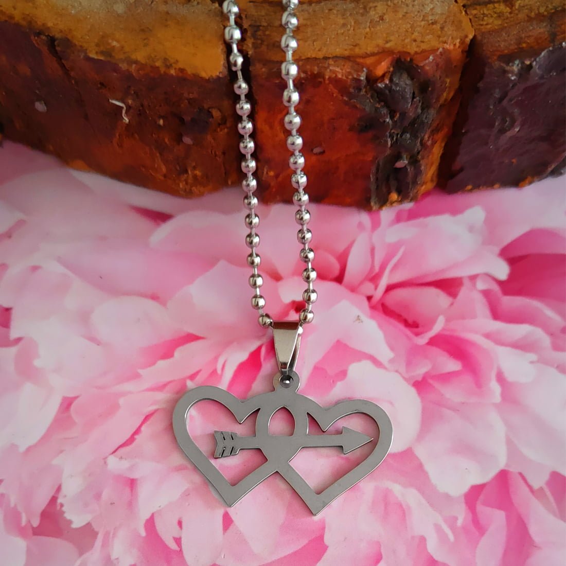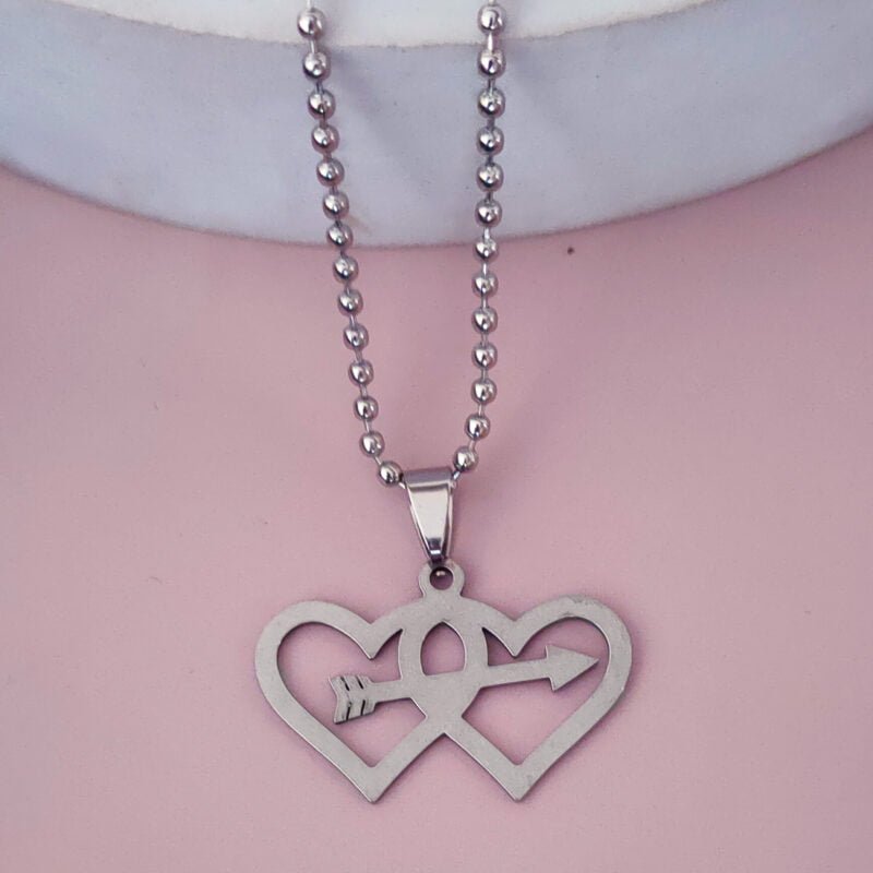 - Valentine Day Gift Arrow In Double Heart Necklace