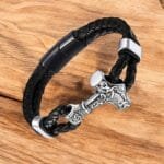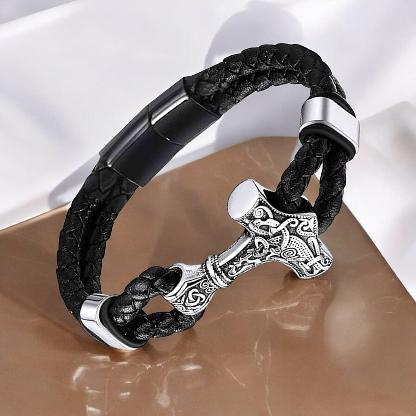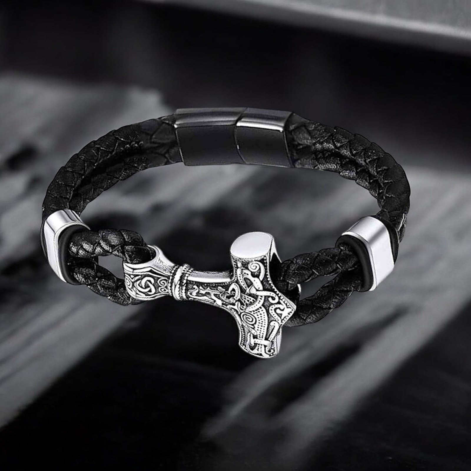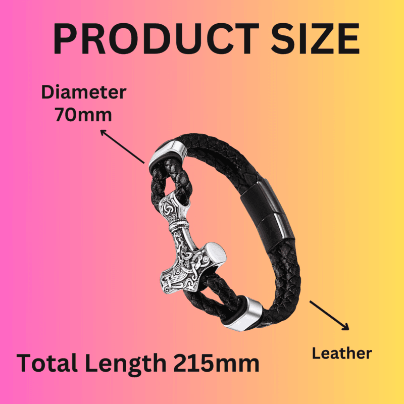 - Vikings Men’s Braided Leather Bracelet with Thorhammer Charm Biker Punk Cool Hip Hop Tribal Gothic Amulet Lucky Charm for Men, Boys and Women, Unisex