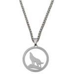 Wolf Design. Pendant and Chain Made of Stainless Steel, Eco-friendly.