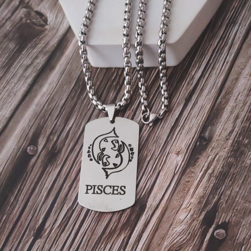 - Pisces Symbol: A pendant with the Pisces glyph (♓) or two fish swimming in opposite directions.