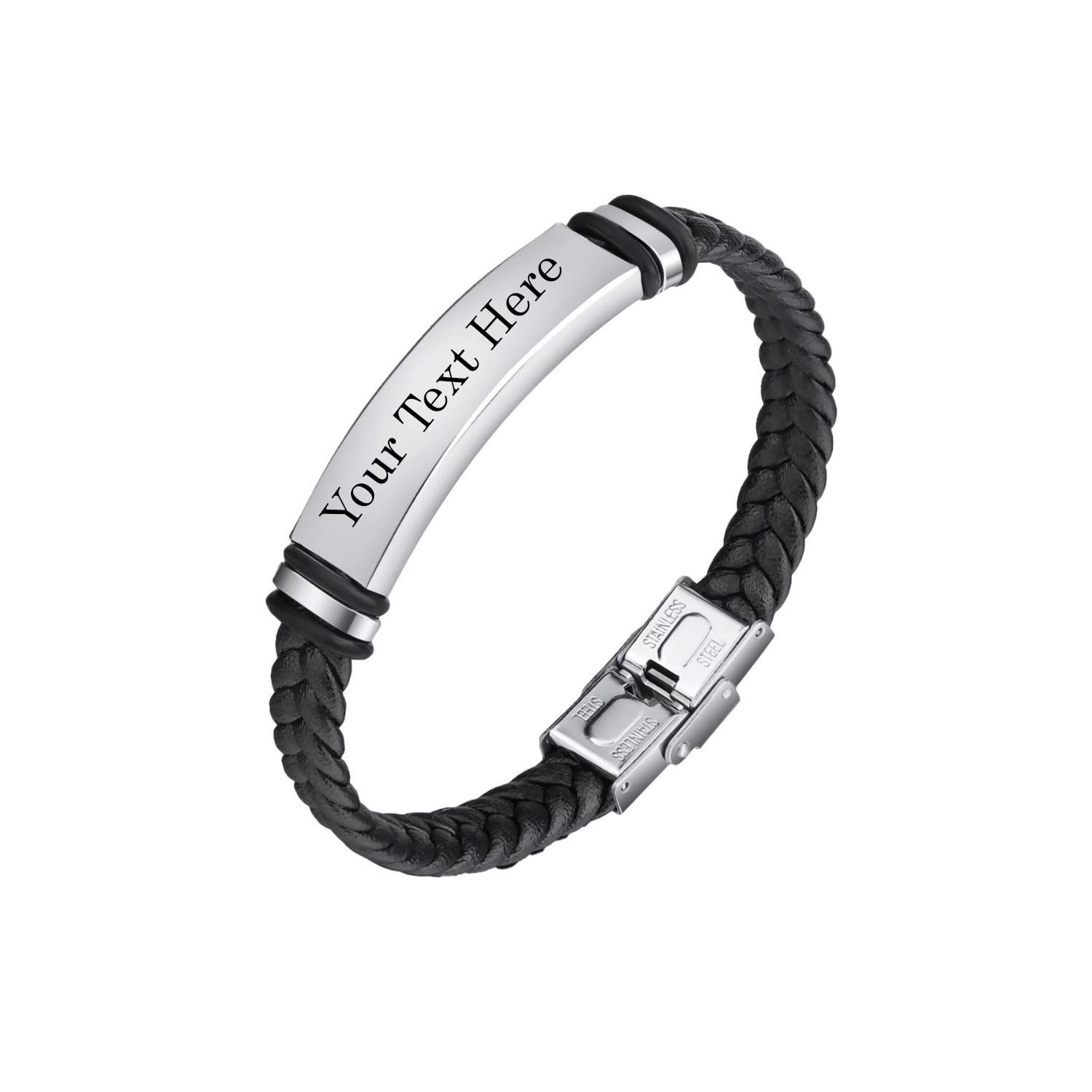 [Personalized leather bracelet]– This men’s leather bracelet with small custom Id is custom for you with any names and text, great for celebrating love, friendship, father’s day and family. Personalised Laser Engraved ID Bracelet