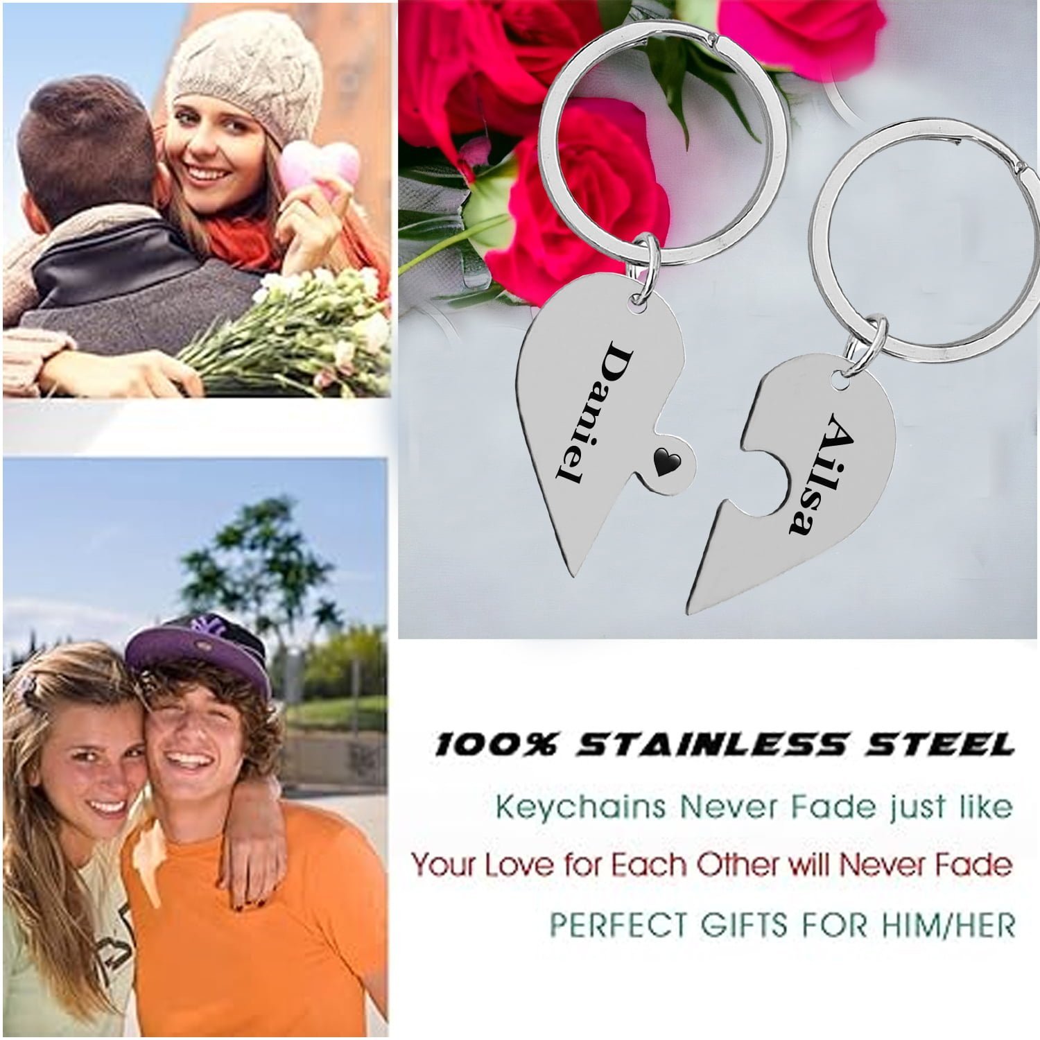 Sweet Couple Keychain Set – A Piece of her/A Piece of him. A unique gifts for your boyfriend/girlfriend or husband/wife for an anniversary gift.Him and Her Gifts – Makes a fantastic gift for Anniversary, Birthday, Wedding, Valentines Day, Christmas, or just send as a surprise gift for that special one in your life to remind her/him how much you care! Anniversary Gift for Husband Wife – This Couples Keychain Set as thoughtful keepsake sweet anniversary Gifts for wife and husband, Let that special Man/Women know how much you love him/her.Material – Made of top stainless steel, friendly skin, it is lead free and nickel free, hypo allergenic, it doesn’t rust, change colour or tarnish. Romantic Couple Gifts – Come with in a free box, ready for giving. This couples keychain set makes a perfect boyfriend/girlfriend, husband/wife gift!