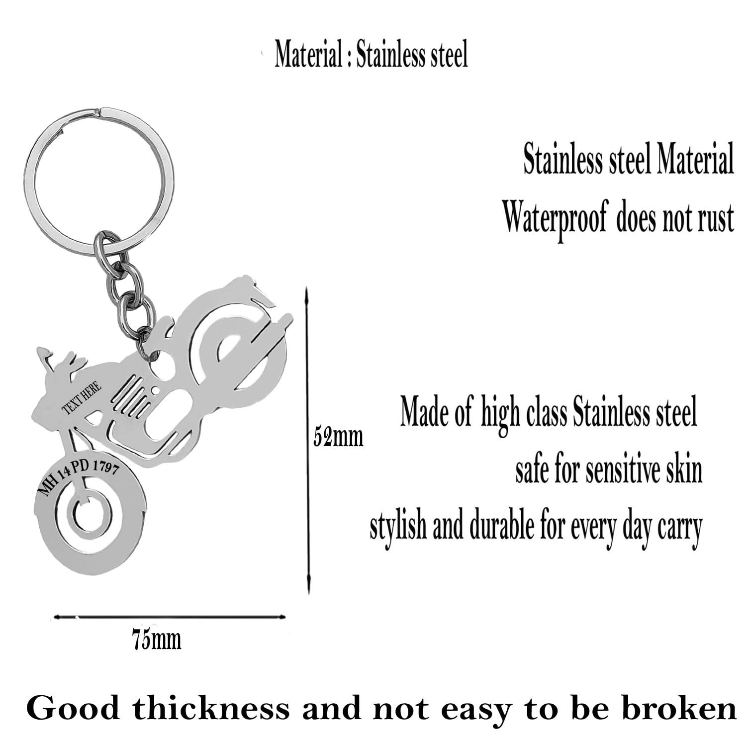 - This is a STEEL name with steel keychain. Anti-allergic and safe for skin: made from excellent material for high durability and life time warrenty. Included Components: Key chain as shown in pic with your customized details.