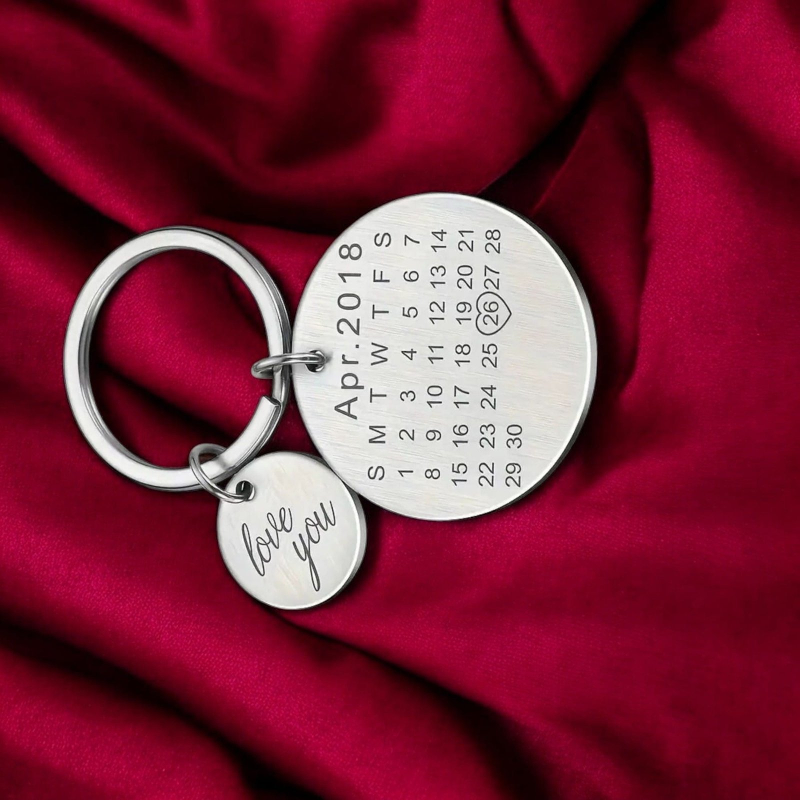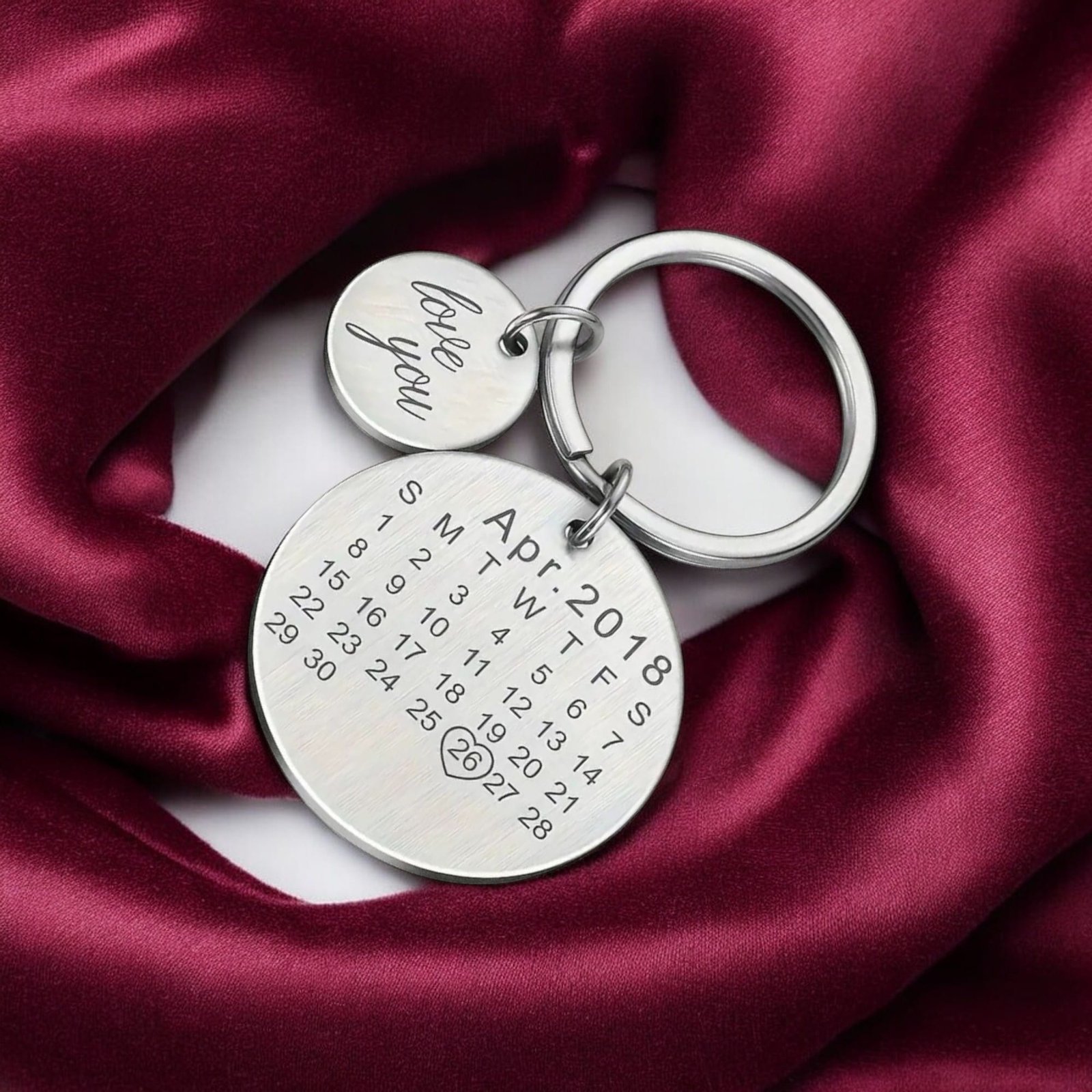 - Personalized Calendar Keyring: This Keychain can be custom year, month and date. Key pendant’s front and back can be engraved. Click the “Customize Now” button to celebrate your special date, a stylish way to remind love, promise, family, or friendship.
