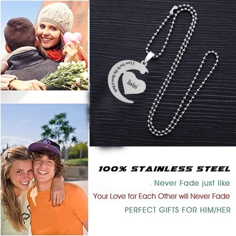 Custom Moon And Heart Necklace